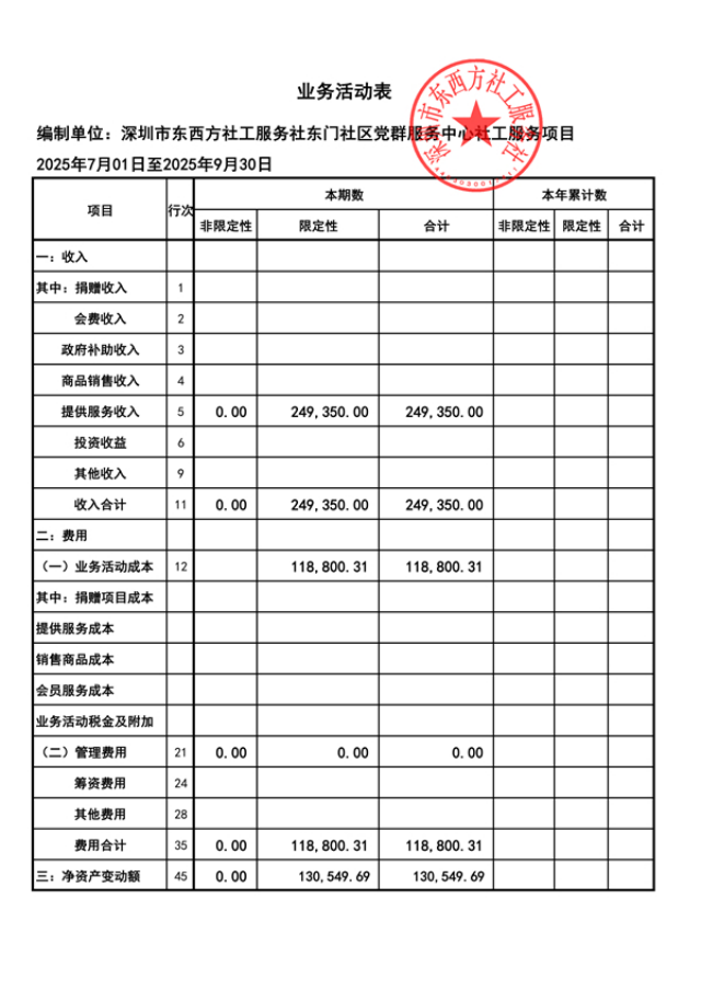【公示】东门社区党群服务中心2025年第三季度财务公示