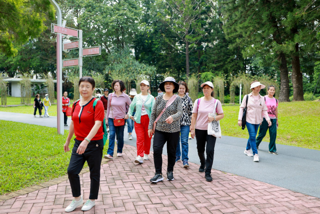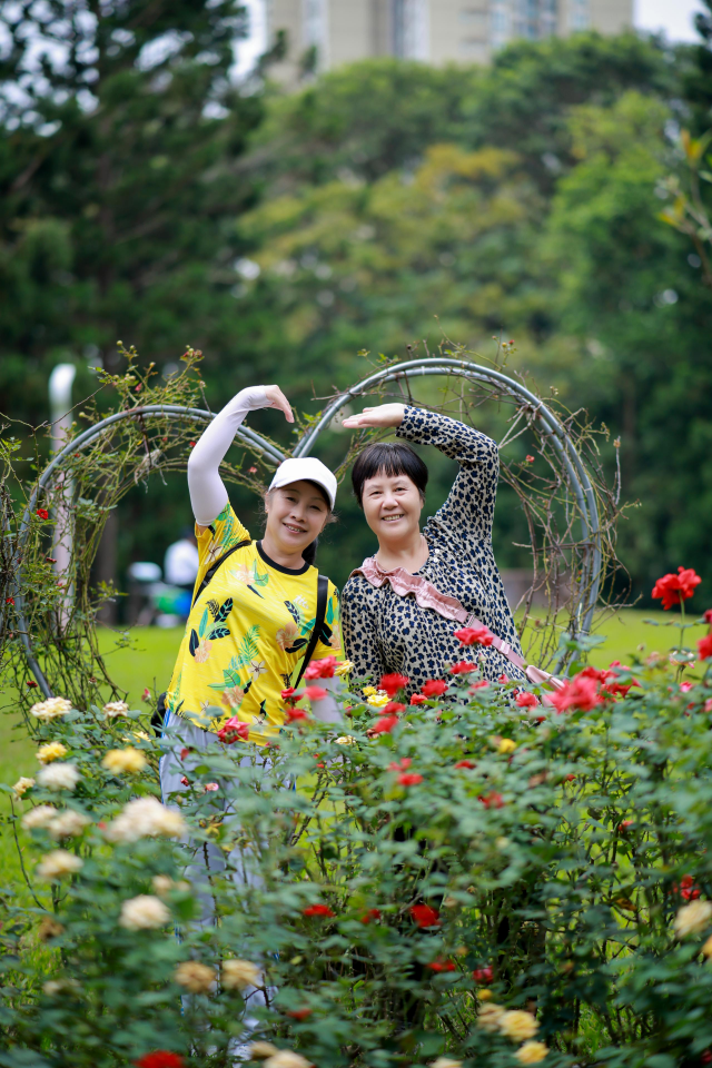 本次行程全长约1.5公里,途径月季园、运动康乐区等二十余处景致,秋意盎然的园林风光令人心旷神怡。队伍中,工作人员分工明确,前后呼应,时刻关注着长者们的状态,并不时提醒注意脚下安全。行进至月季园等特色景点时,特别设置了“秋景留影”环节,专业摄影师敏捷地捕捉着老人们赏景、交谈的温馨瞬间,为长者们记录下一张张珍贵的个人与小组照片,欢声笑语回荡在绿树掩映的步道间。