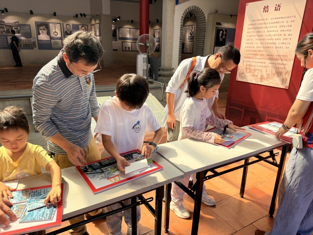 “以前只是给孩子讲红色故事,今天通过视频直观呈现,孩子更能感受到小英雄的坚强,比单纯说教效果好太多。” 参与活动的家长感慨,这样的沉浸式体验,让孩子对红色历史有了更深刻的理解。视频观看结束后,“小小通信员” 们在家长陪同下开启红色场馆闯关之旅。活动串联东门红色记忆馆、东江游击队指挥部旧址、思月书院三大红色地标,每个场馆都设置了与《鸡毛信》故事呼应的线索任务:在东门红色记忆馆寻找 “隐藏的情报密码”,在东江游击队指挥部旧址完成 “红色知识问答”,在思月书院拼接 “红色地标拼图”。亲子家庭分工协作,孩子们负责记录线索,家长协助分析任务,现场既有欢声笑语,又有紧张的闯关氛围。在完成任务的过程中,亲子不仅锻炼了观察力与逻辑思维,更对东门的红色历史有了全新认知。随着最后一组家庭完成所有闯关任务,活动进入颁奖环节。工作人员根据任务完成速度与准确率,为前三名亲子家庭颁发礼品,鼓励孩子们将红色精神融入日常生活。“能拿到奖品特别开心!以后我还要听更多红色故事,做像海娃一样勇敢的人。” 获得第一名的小朋友举着奖品,脸上满是自豪。