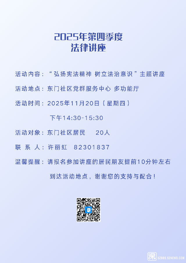 【招募】2025年东门社区第四季度法律讲座通知