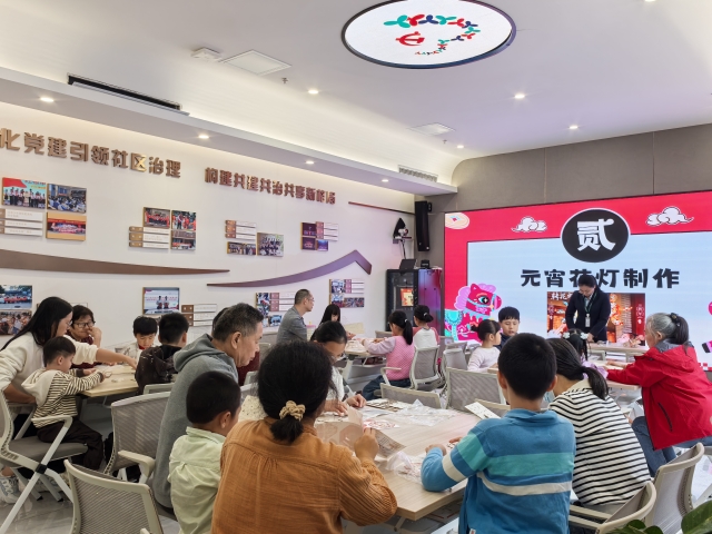 随后,家长与孩子携手合作,共同制作出一盏盏精美的花灯。在动手实践中,孩子们不仅加深了对传统节日文化的理解,更在与父母的亲密互动中,增进了亲子间的情感交流。现场其乐融融,洋溢着温馨和谐的社区氛围。