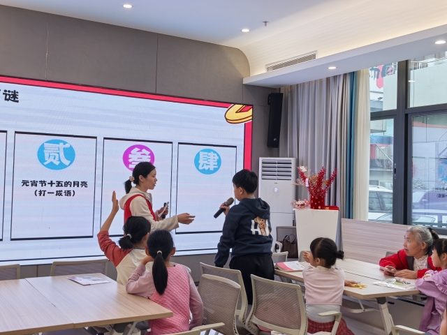 活动伊始,工作人员先通过元宵主题短片带领家长和孩子们一同了解元宵佳节的历史渊源与传统习俗。随后进行知识问答和猜灯谜环节,孩子们踊跃举手,争相回答关于元宵节的小知识,在欢声笑语中感受着传统文化的智慧与乐趣。