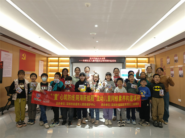 2月22日上午9点半,东晓社区党群服务中心携手深圳市未成年人救助保护中心,共同举办了一场精彩纷呈的儿童网络安全情景剧体验活动,吸引了辖区20位社区孩子参与。本次活动以趣味互动的形式,帮助孩子们提升网络安全意识,增强自我保护能力。