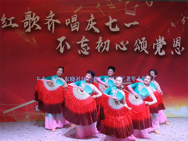 为深入推进“百千万工程”,丰富社区居民精神文化生活,6月25日,东晓社区联合老年人协会在天河城金啤坊D栋报告厅举办了“红歌齐唱庆七一,不忘初心颂党恩”主题红歌会活动。社区居民在老年人协会的组织下,带来了一场充满真挚情感的庆祝演出。报告厅内气氛热烈,邻里欢聚一堂,共同用歌声和表演庆祝党的生日。