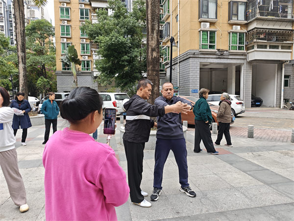为覆盖更多行动不便或未能每日到场的长者,李锦充分运用在社区学到的直播技能,每日同步开展线上直播教学。镜头前,她配合黄老师的讲解,实时展示动作细节,及时回复线上学员的提问,让未能亲临现场的长者也能每日“云上课”,随时随地跟随专业指导练习。“年纪大了出门不方便,在家就能跟着直播学,10天下来慢慢找到了感觉,李锦老师讲得清楚,黄老师动作也标准,太贴心了!”家住社区的张阿姨通过线上直播全程参与学习后,特意在社区群里分享了自己的收获。