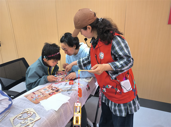 活动于上午10点准时开始。首先进行的是元宵花灯制作环节,社工详细讲解了花灯的历史渊源与制作技巧。家长与孩子们分工协作,串珠、穿绳、粘贴……一盏盏承载着团圆寓意、点缀着“小马驮福”图案的创意花灯逐渐成型。在指尖流转间,亲子共同感受传统民俗的魅力,更在协作互动中增进了情感交流。