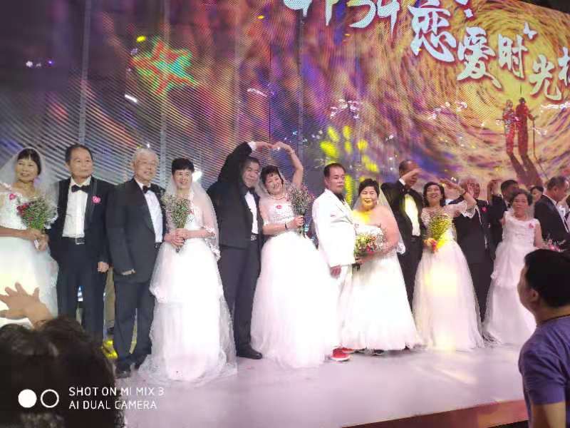 50年相濡以沫爱如歌,50年风雨同舟情相依,恩爱夫妻情无限,同贺金婚,白首永相伴。东晓街道老年人协会55对金婚银婚夫妇,在7月21日到深圳水贝IBC MALL四楼“C格式”,参加“恋爱时光机”活动,本次活动是由企业家联盟GP34主办,罗湖区东晓街道及多家媒体单位支持的一场大型慈善活动,旨在帮助广西藤县新庆镇建新小学的危校重建募集善款。