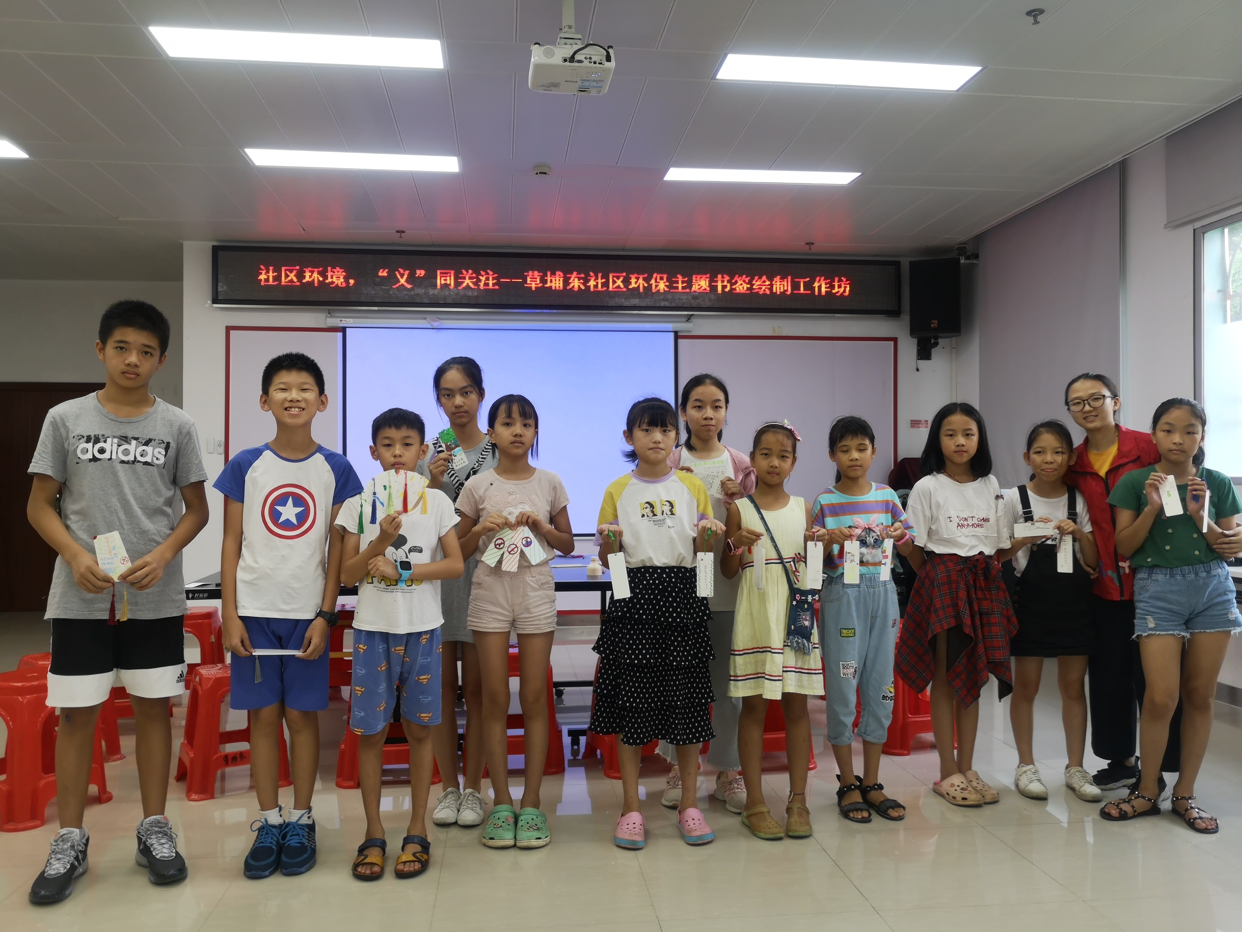 为增进社区小义工对社区环境问题的关注,提升其改善社区问题的能力,进一步推进儿童友好社区的建设,响应文明城市的创建,草埔东社区党群服务中心于2019年9月7日下午开展了环保主题书签绘制工作坊。