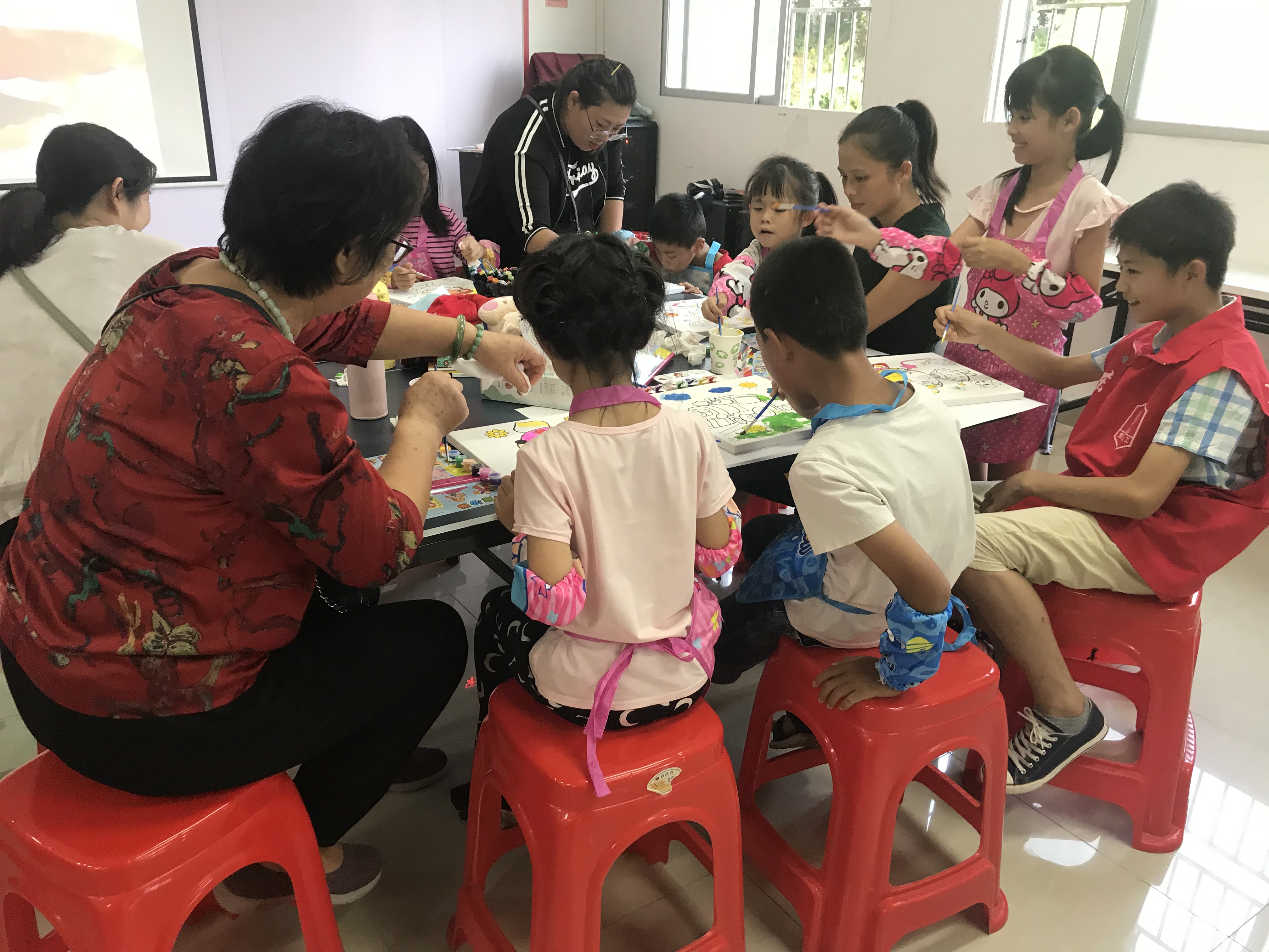 活动开始由社工带领亲子进行热身游戏,通过破冰游戏活跃了现场气氛,通过考验观察力的小游戏让参加者体验到阅读时细心观察的重要性。接着由社工带领亲子共同阅读《小河里的草帽》,这个故事讲述了一顶帽子被风吹到小河后,小河里的小动物们从刚开始的争抢到最后目送鸟大叔将帽子带回给稻草人爷爷的过程。小小的故事蕴含着物归原主的道理,参加者分组表演了这个故事,组员们扮演着稻草人爷爷、小乌龟、小鱼、大熊等角色,现场气氛欢乐,最后每组家庭通过绘画感受色彩的斑斓,体验彩绘的乐趣。