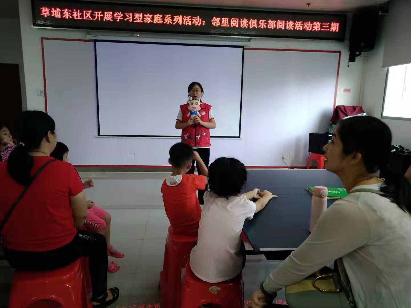 2019年10月27日下午,草埔东社区党群服务中心开展了邻里阅读俱乐部阅读活动第三期之亲子故事会,本次活动共吸引20名对阅读感兴趣的儿童及家长参与。