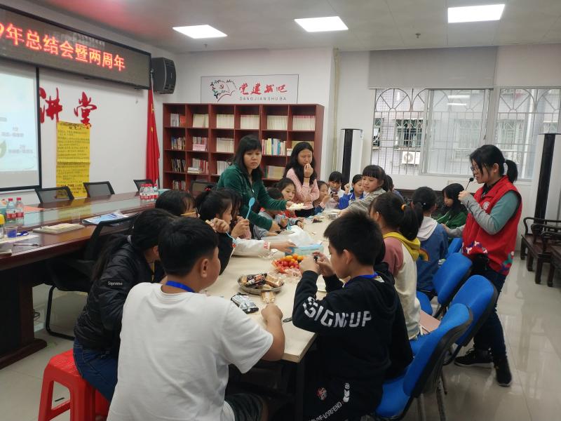 总结会分为述职及服务回顾、需求讨论与明年计划、队长选举、表彰与分享四个部分内容。活动一开始,社工简述了活动内容与流程,接着便邀请5名心理小卫士代表进行个人总结。然后,由社工结合服务照片、剧场视频与大家共同回顾了本年度的服务内容,并对由小卫士策划及开展的小学生心理知识宣传及反欺凌主题课堂小剧场再次给予肯定和鼓励。在需求讨论与明年计划环节中,各位小卫士提出了个人在态度、技能及知识三个方面的需求,并结合以往的经验对明年的服务形式做出了筛选与添加,如保留了外展宣传、增加播放录制视频宣传等。紧接着,社工对本年度表现积极的心理小卫士进行了表彰,对他们坚持出席例会、积极参与项目服务及团结互助的行为给予肯定。最后,社工与大家一起分享两周年庆蛋糕,对大家的参与和支持表示感谢,并对明年项目的深入开展寄予美好的祝愿。