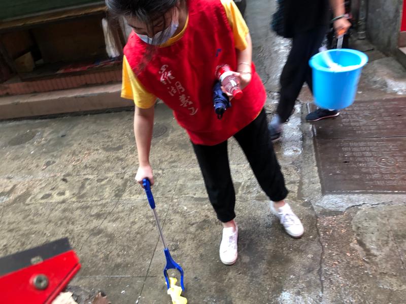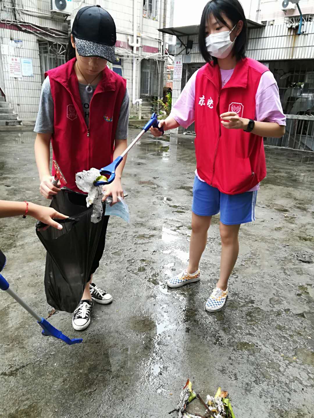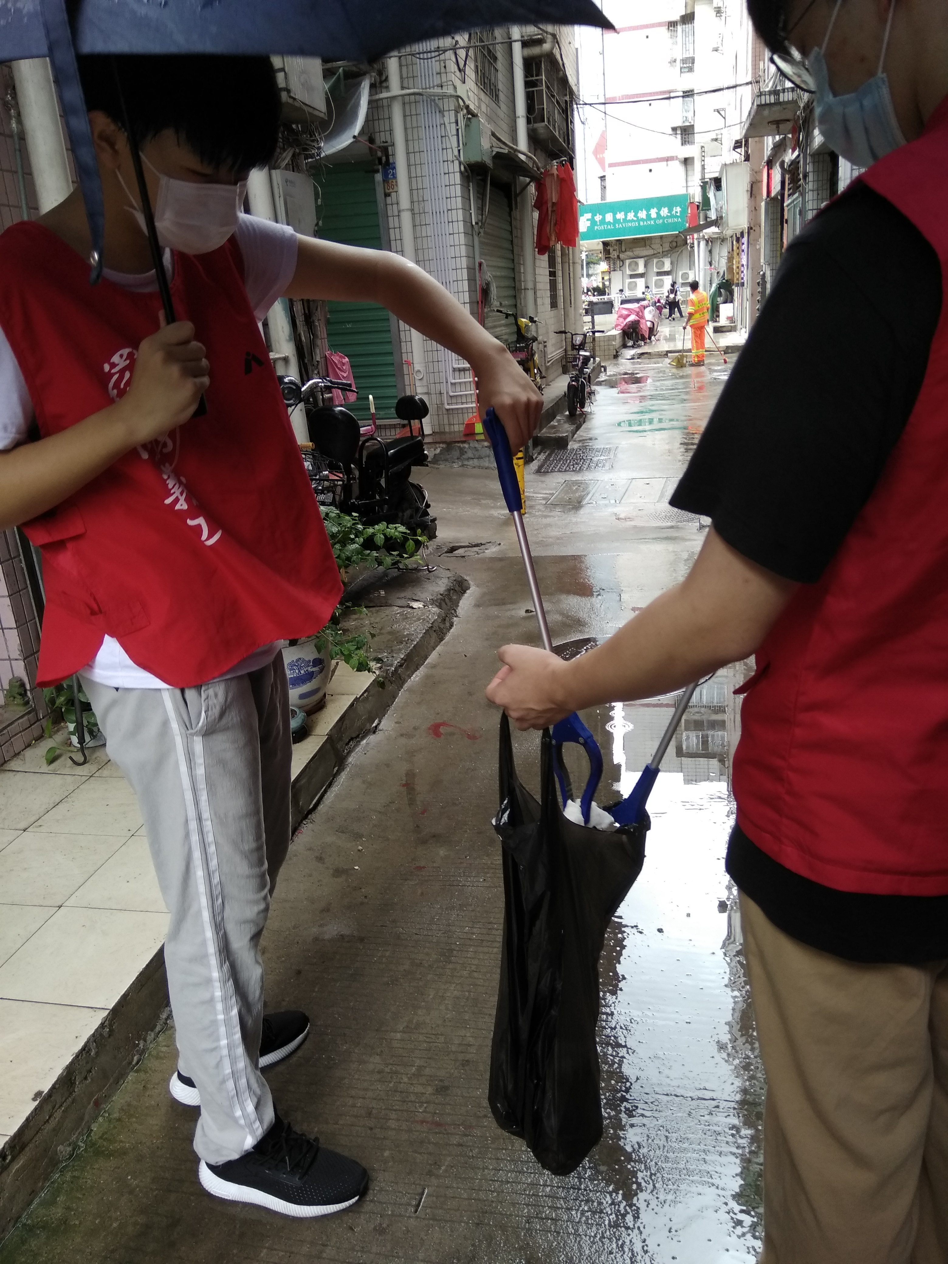 雨水也浇灭不了志愿者们为社区服务的热情,本次活动通过“大手拉小手”的形式,“新老”义工搭配,带着垃圾袋,垃圾夹、小铲子等装备活跃在社区的各个角落,把卫生死角清理得干干净净。