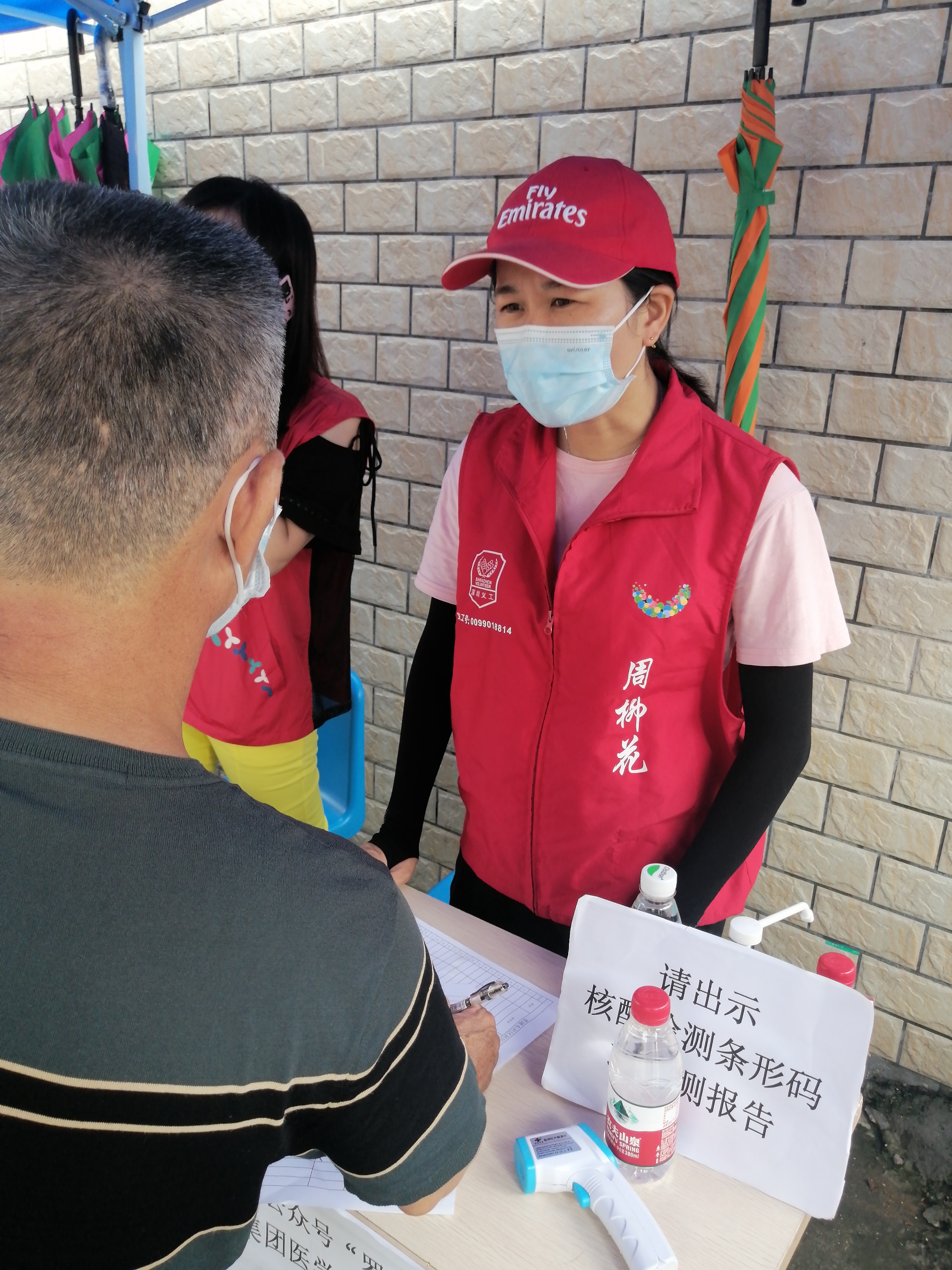 义工协助社区工作者进行卡口执勤,对要进入社区的居民进行询问,通过查看居民的条形码和核算检测结果等途径来了解居民的检测情况。义工对已检测的居民则放行,而未检测的居民,则指引他们到最近的检测点进行检测。