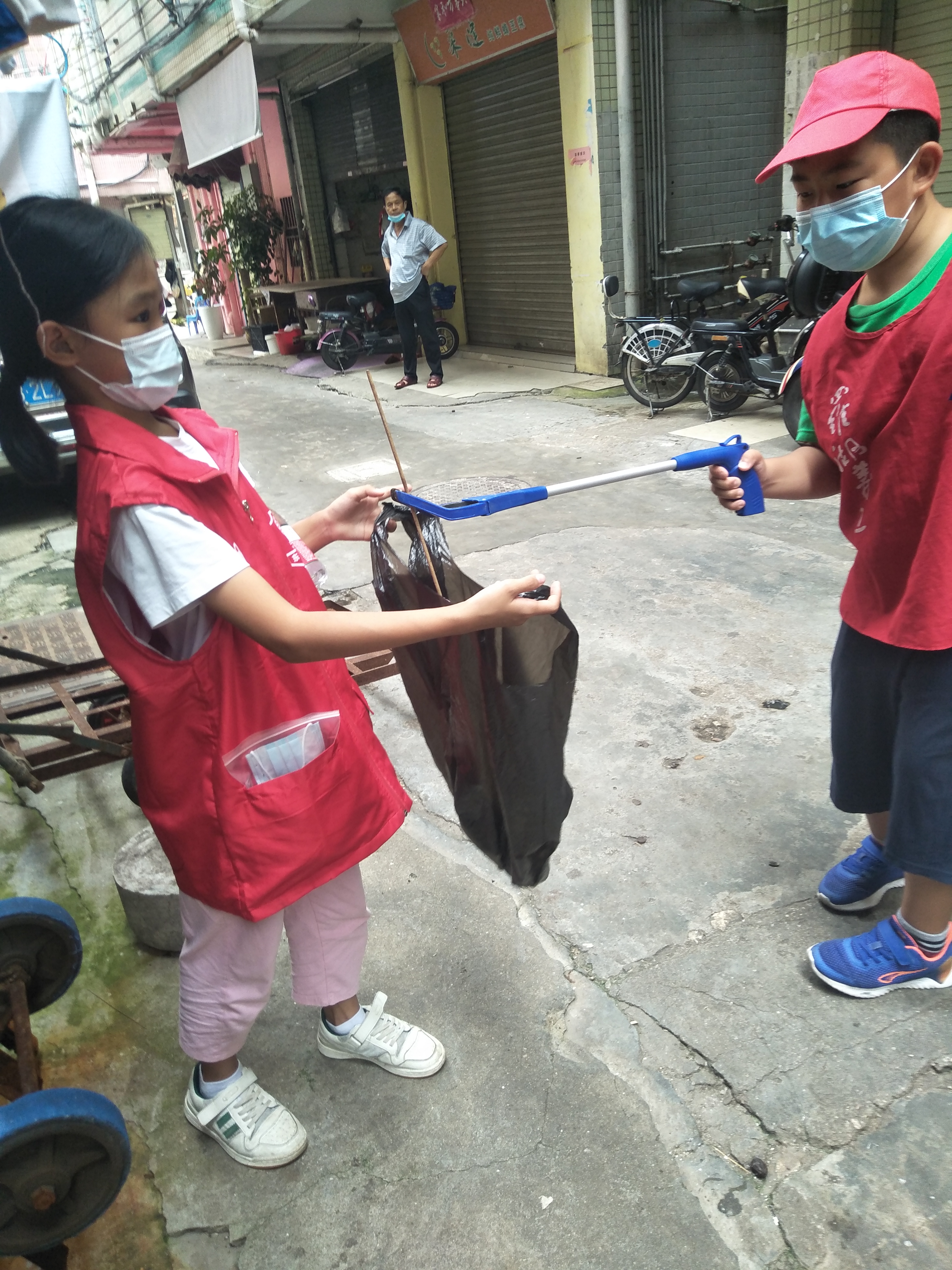 本次活动通过“大手拉小手”的形式,“新老”义工搭配,共同携手保卫家园;小义工们紧跟着老义工们的步伐,拿着垃圾袋随时准备接广告废纸及烟头;而老义工们卖力的铲除墙上及信息张贴栏上的破旧广告纸。她们一路上完美的搭配及埋头苦干的劲头,渲染了社区内的居民,有些居民说,你看小孩子都知道爱护社区环境,我们少扔一个烟头做到不乱粘贴广告,社区环境不是更加美好吗!