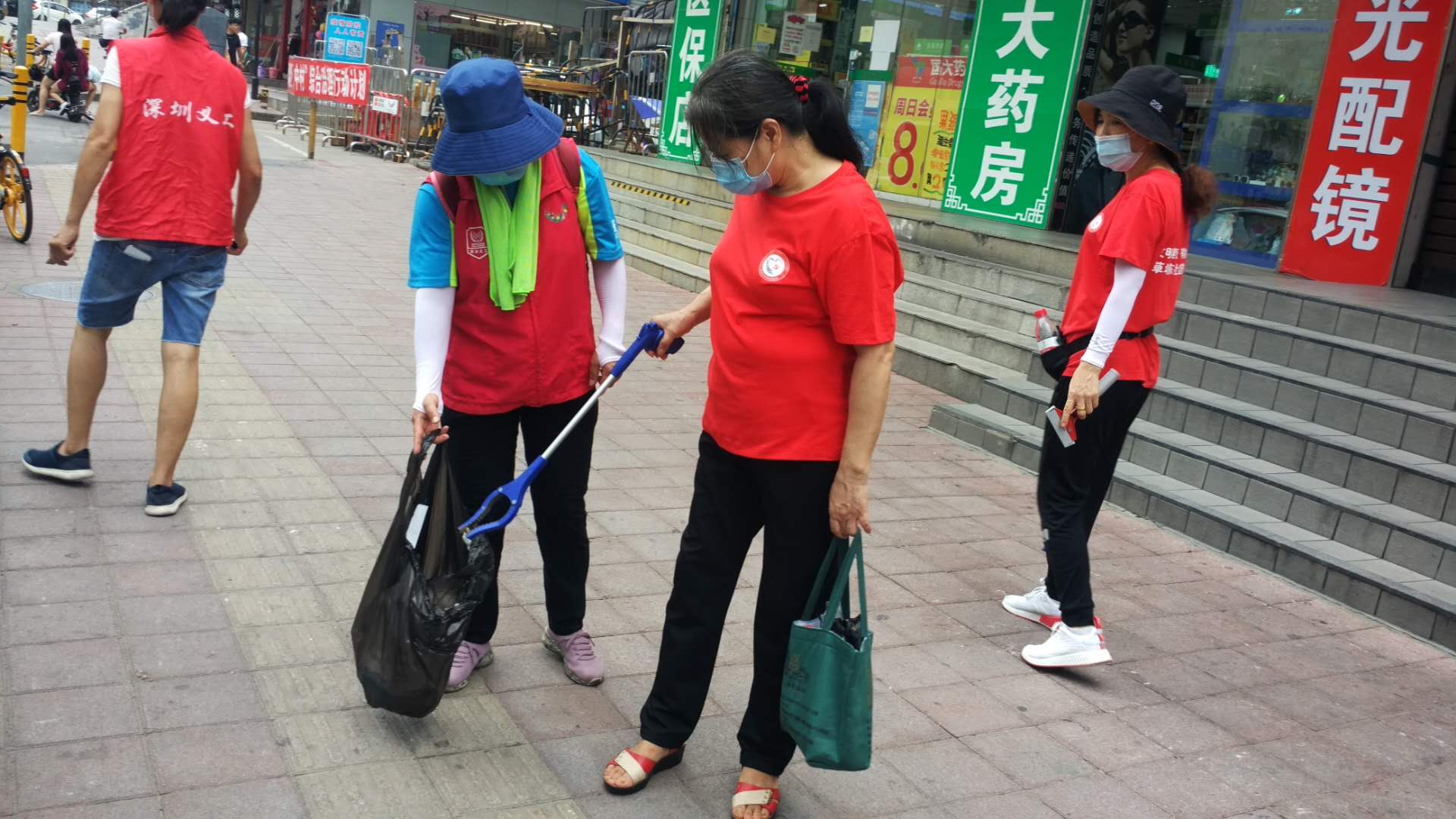 活动过程中,志愿者们分成俩小队,5人一组分别拿着垃圾袋,垃圾夹、小铲子等工具,在社区角落的卫生黑点、卫生死角、卫生空白点进行卫生检查、清洁及打扫。