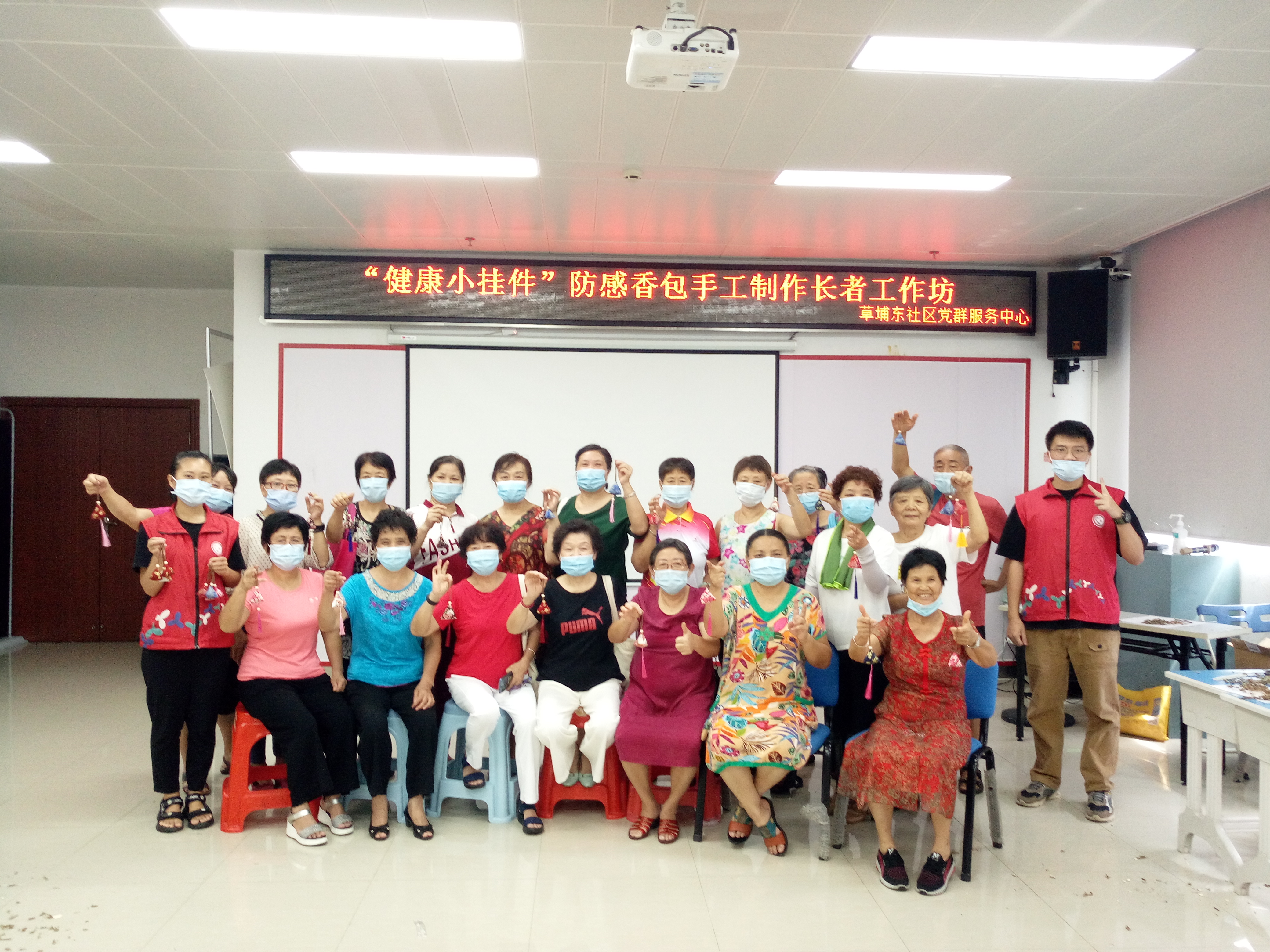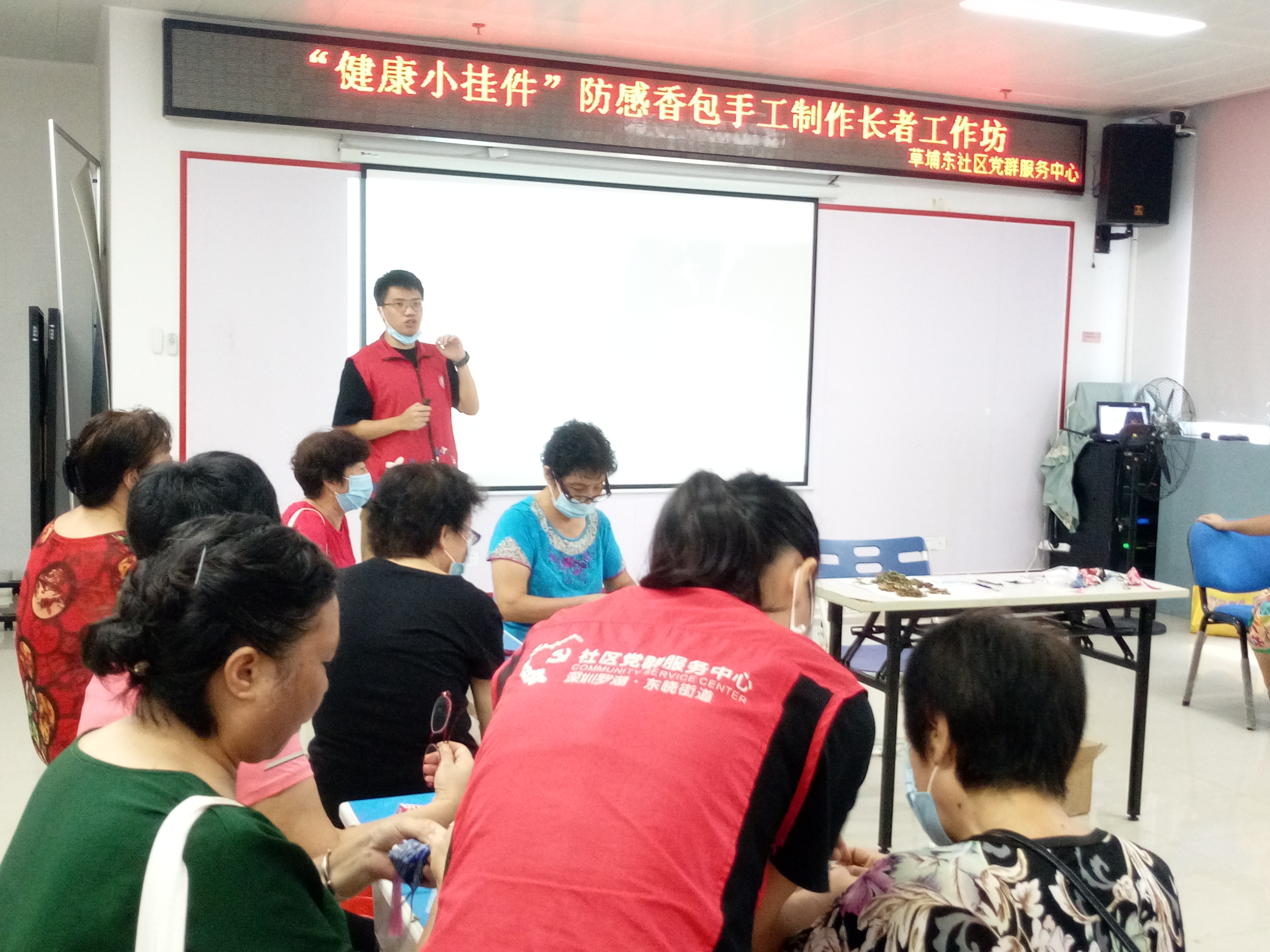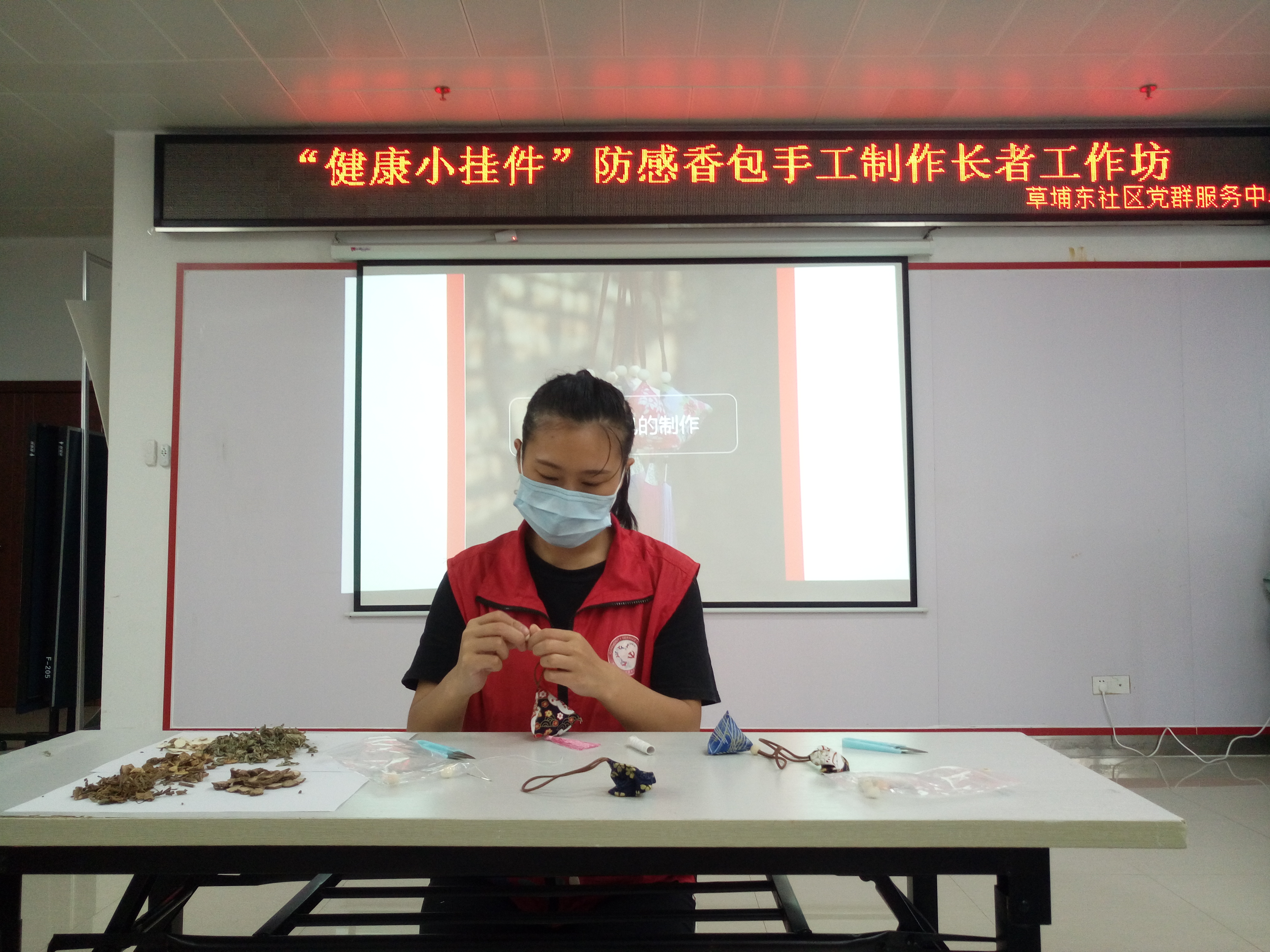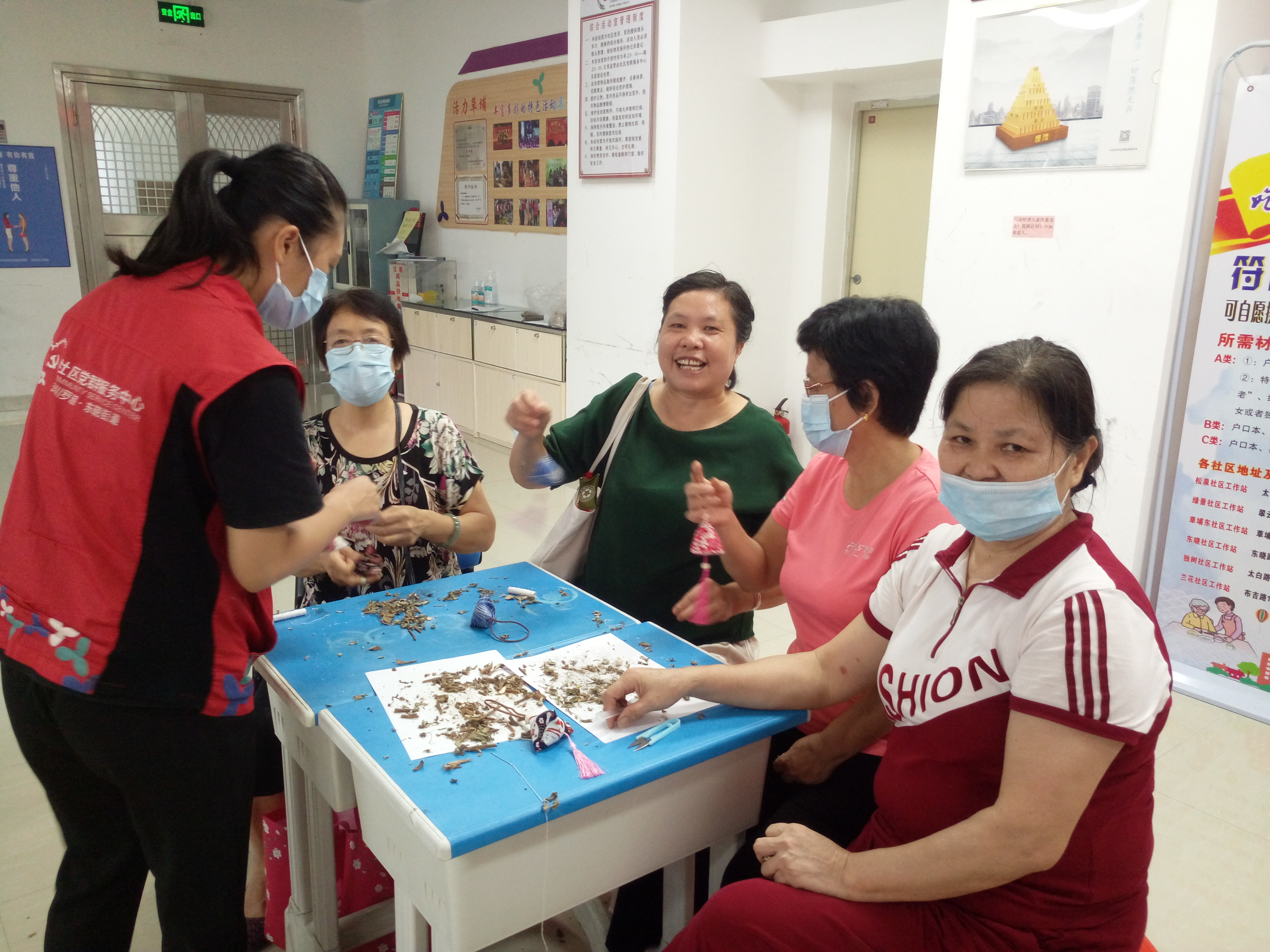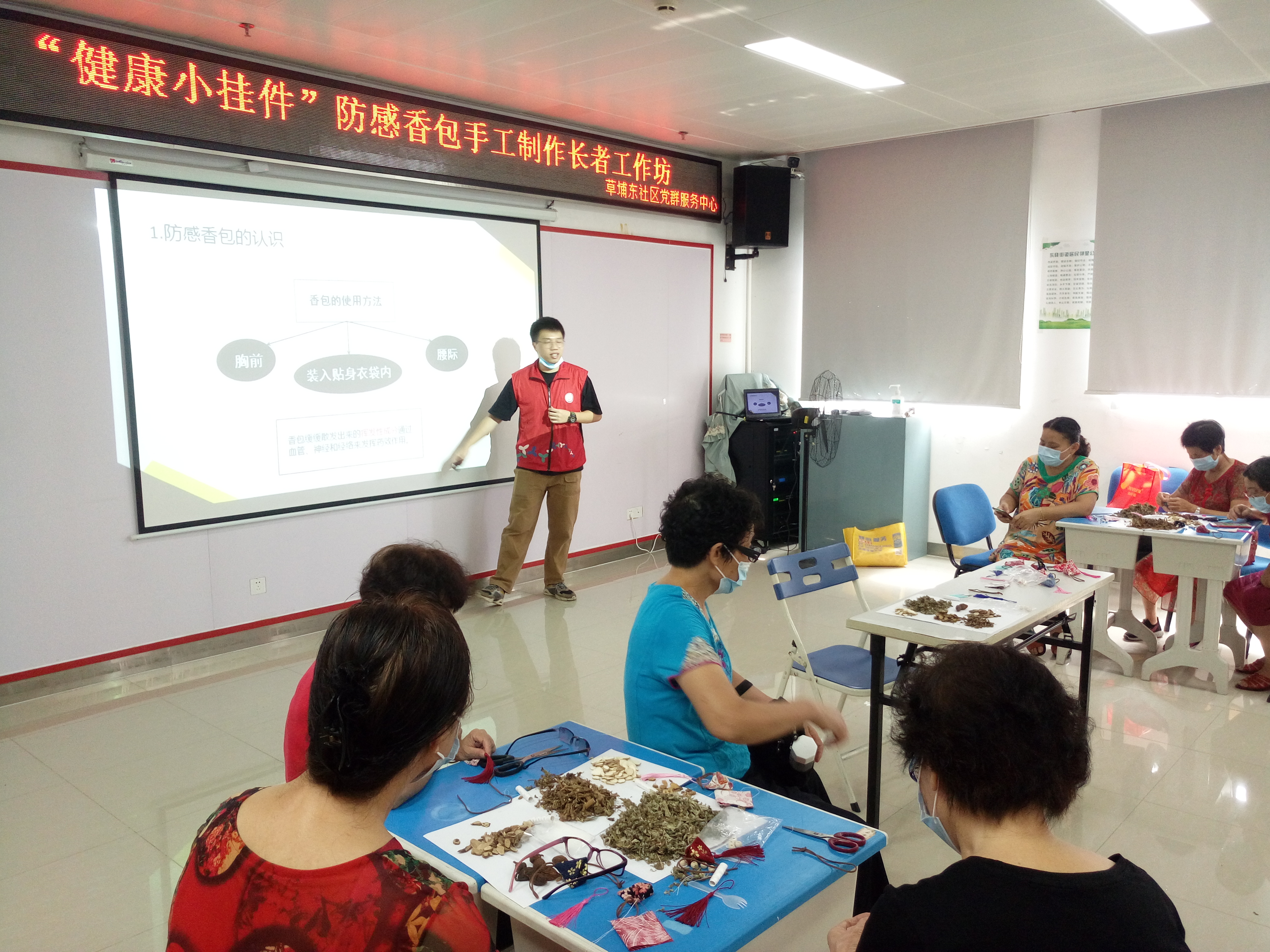 白露,二十四节气之一,于公历9月7-9日交节,表示着夏季风逐渐被冬季风所替代,天气从酷热逐渐转凉。天气温度变化较大的时节往往是人体容易感冒生病的时候,为了让社区长者在季节的变化中能够预防感冒的发生,在草埔东社区党委的统筹领导下,深圳市东西方社工服务社驻草埔东社区党群服务中心社工服务项目组在2020年9月16日顺利开展“健康小挂件”防感香包制作长者工作坊。