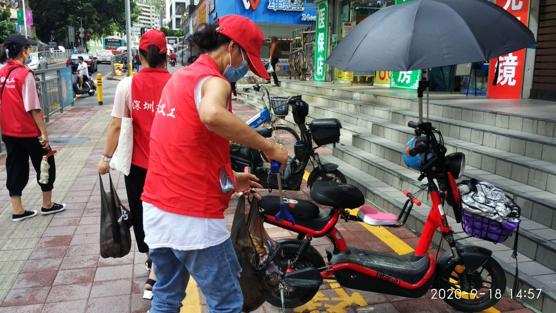 天空下着蒙蒙小雨,志愿者们举着雨伞,在社工的带领下,分成俩小组,她们拿着铲子、夹子、垃圾袋和扫把。一组前往清水河村,而另一组在吓屋围菜市场清洁流动垃圾。