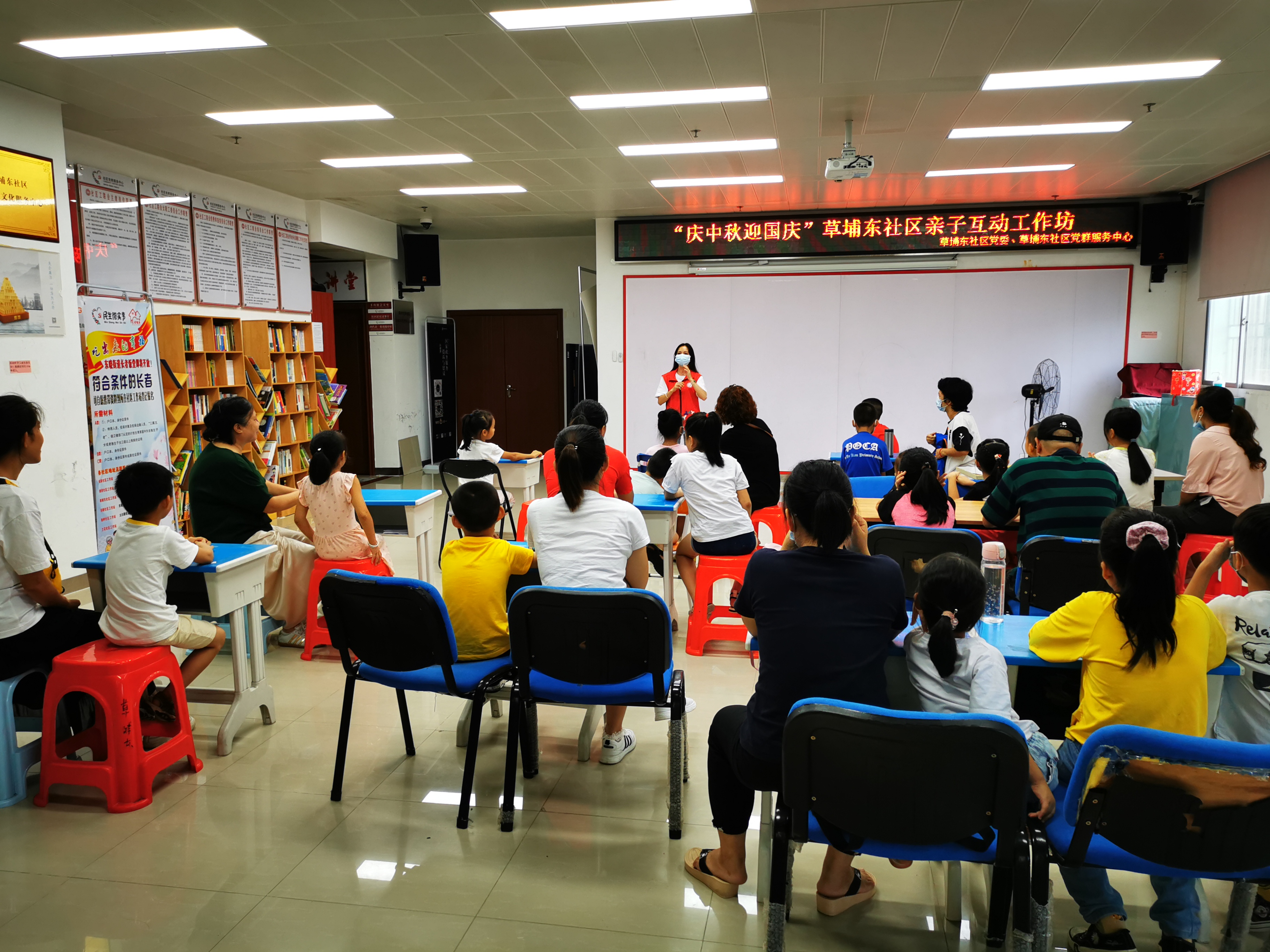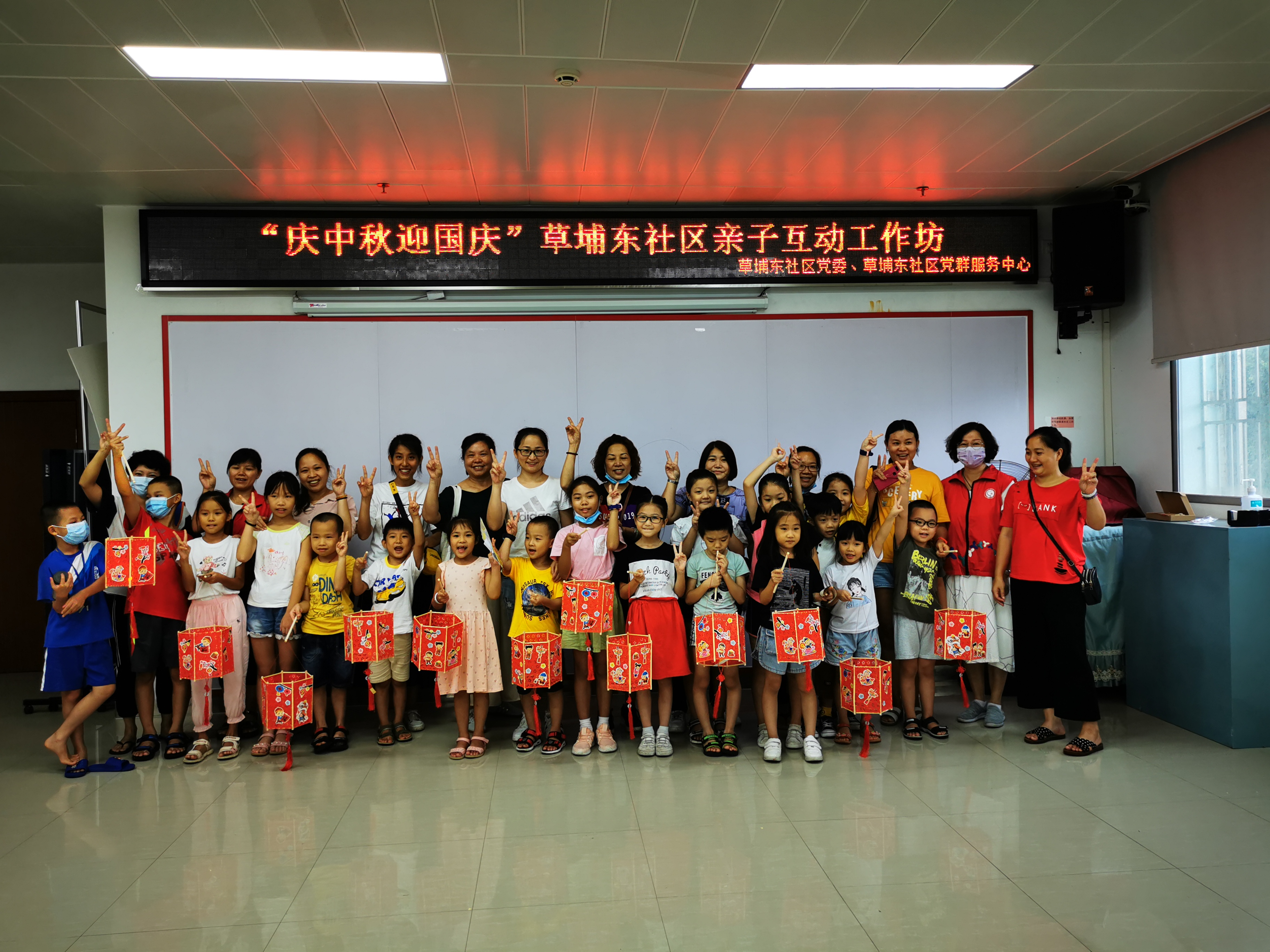 今年的中秋与国庆喜相逢,为了让社区亲子感受传统文化的魅力,2020年9月19日下午,在草埔东社区党委的统筹领导下,东西方驻草埔东社区党群服务中心社工服务项目组开展了亲子互动工作坊,在社区活动室举办,吸引了11组社区亲子家庭参加。