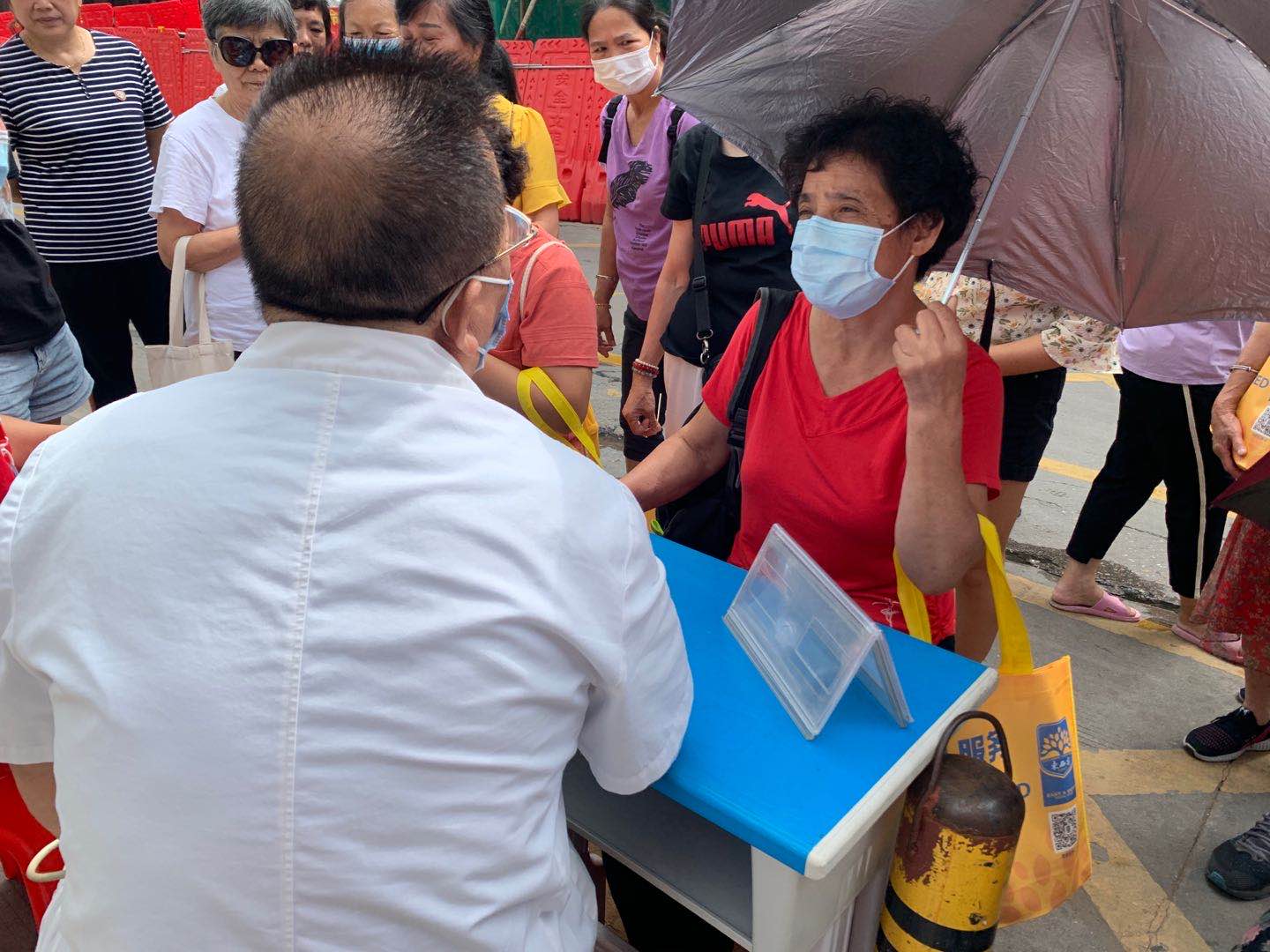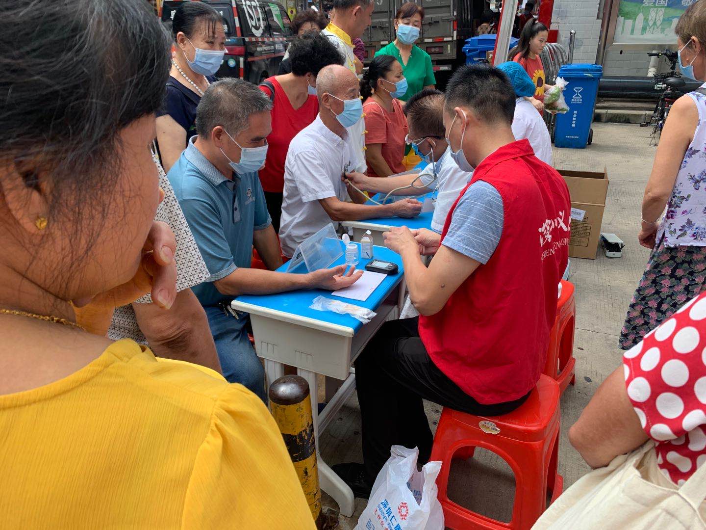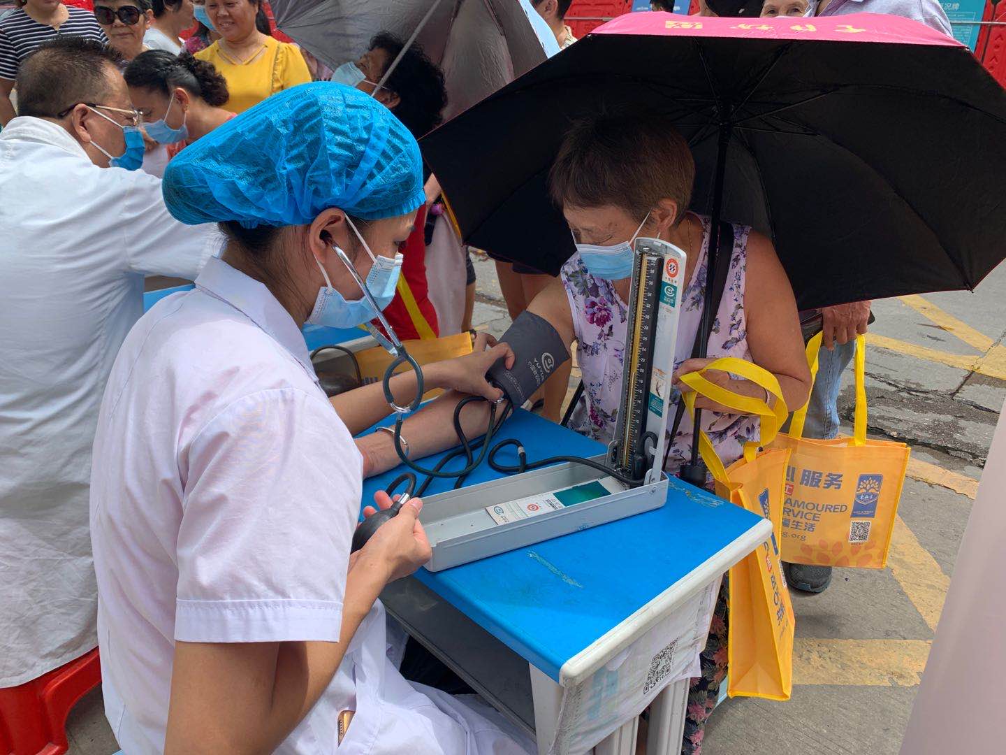 活动的第二个环节就是社区义诊,在紫荆花园A栋一楼设置了摊位,向社区长者提供血压血糖以及咨询的义诊服务。社区长者为了对自己的身体健康有更清晰的认识都纷纷的前来参与。