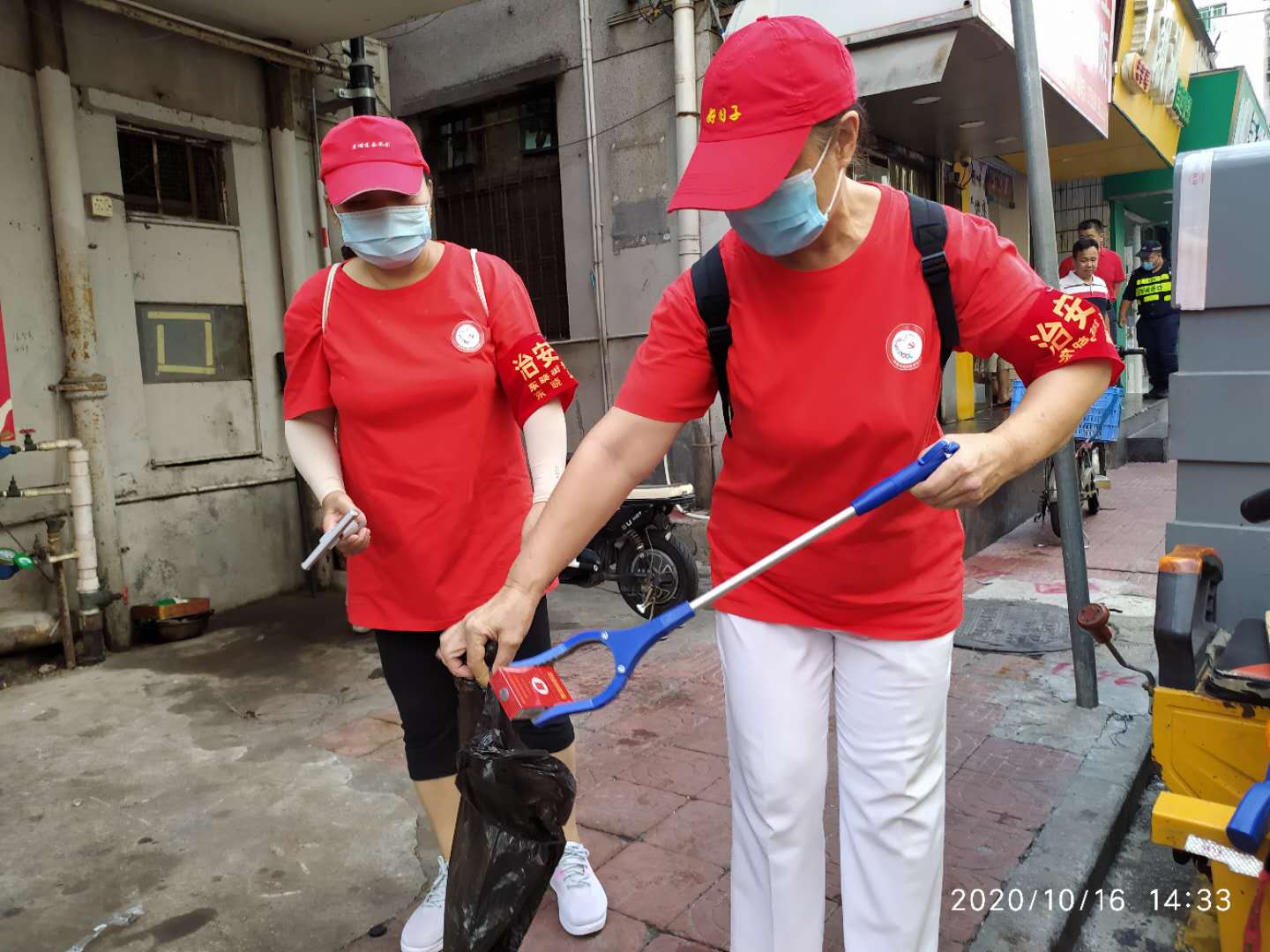 按惯例此次活动招募了12名社区志愿者,志愿者们手上带着治安巡逻的红袖章穿梭在街道上,对个别商店门前乱扔垃圾的现象进行劝导;而其中8名志愿者们前往清水河村,她们手上拿着垃圾袋,垃圾夹、小铲子等工具,把清水河村区域的小角落、卫生死角、卫生空白点进行卫生检查、清洁。