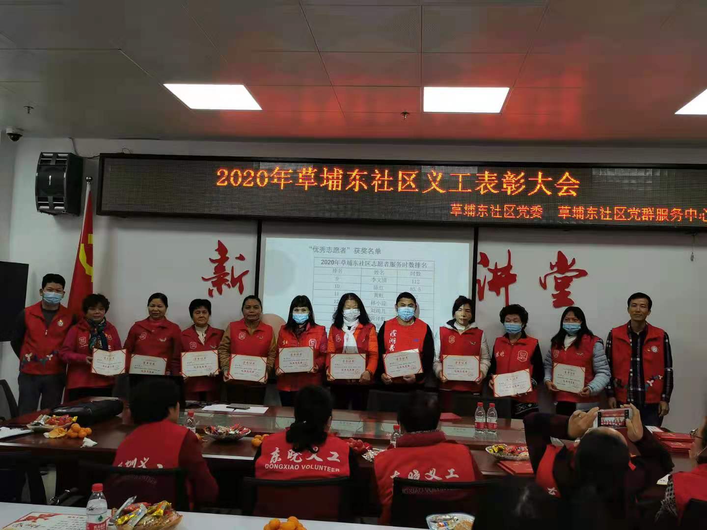 2020是一个不平凡的一年,义工在这一年里付出了许许多多的汗水,在社区里服务每一位居民。为了肯定义工在这一年里的服务,激励义工的内在动力,提升义工队伍的认同感,在草埔东社区党委的统筹领导下,深圳市东西方社工服务社驻草埔东社区党群服务中心社工服务项目组于2020年12月15日下午15:00开展2020年草埔东社区义工表彰大会,本次义工表彰大会共有30人参与。