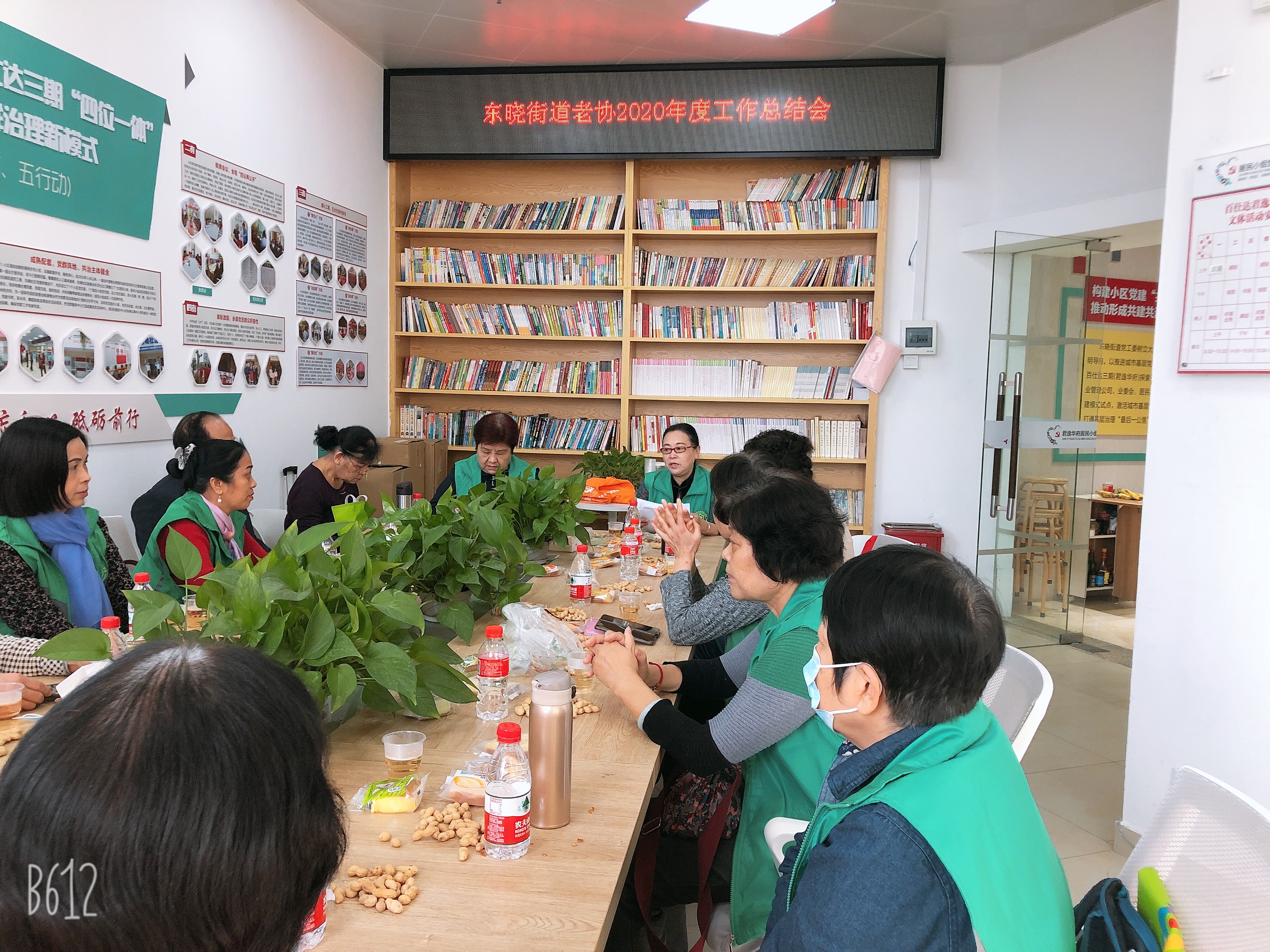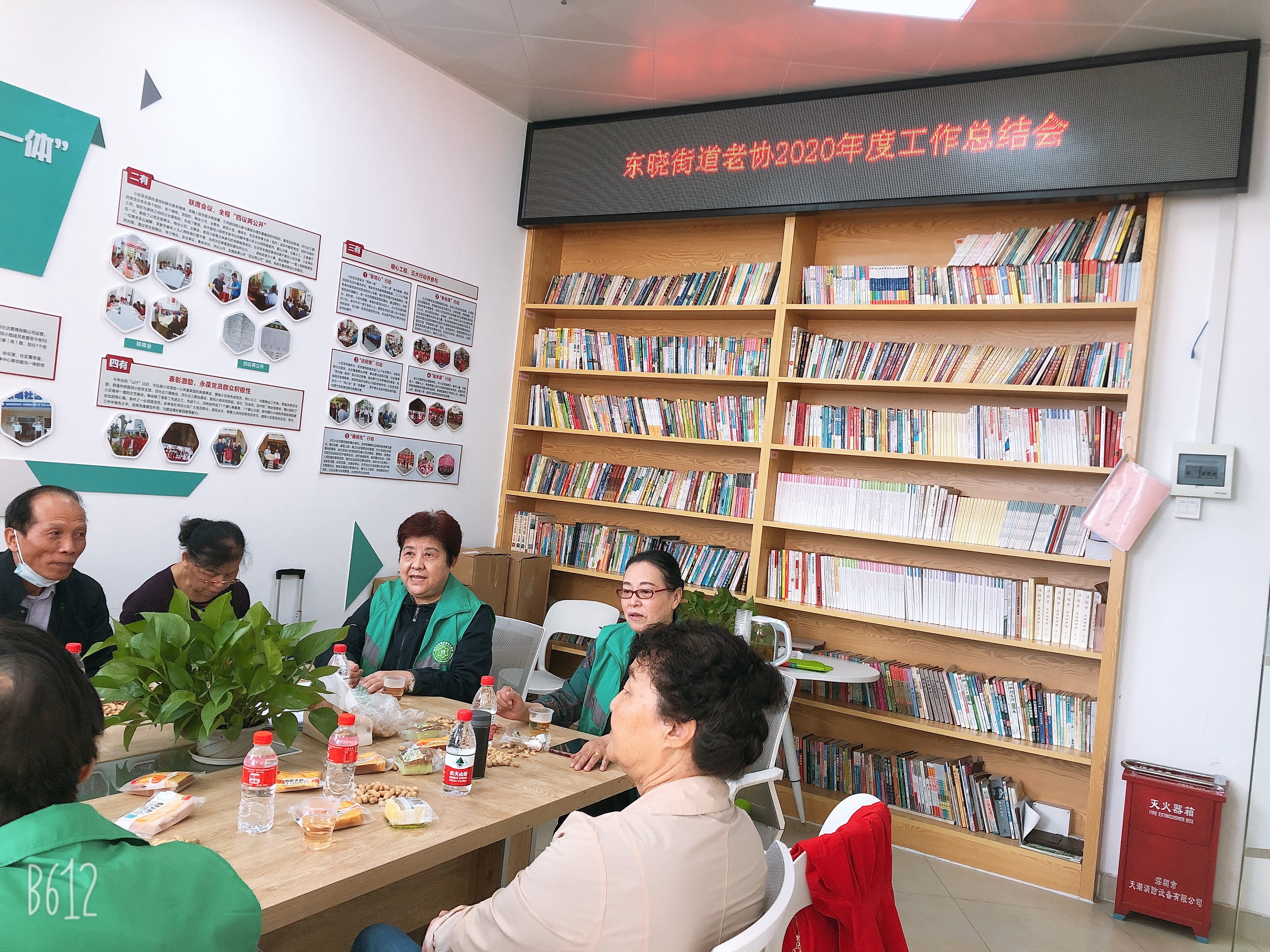 12月28日早上,东晓街道老协姚会长带领辖区会长及理事会成员在东晓社区图书室召开了2020年度工作总结会议。