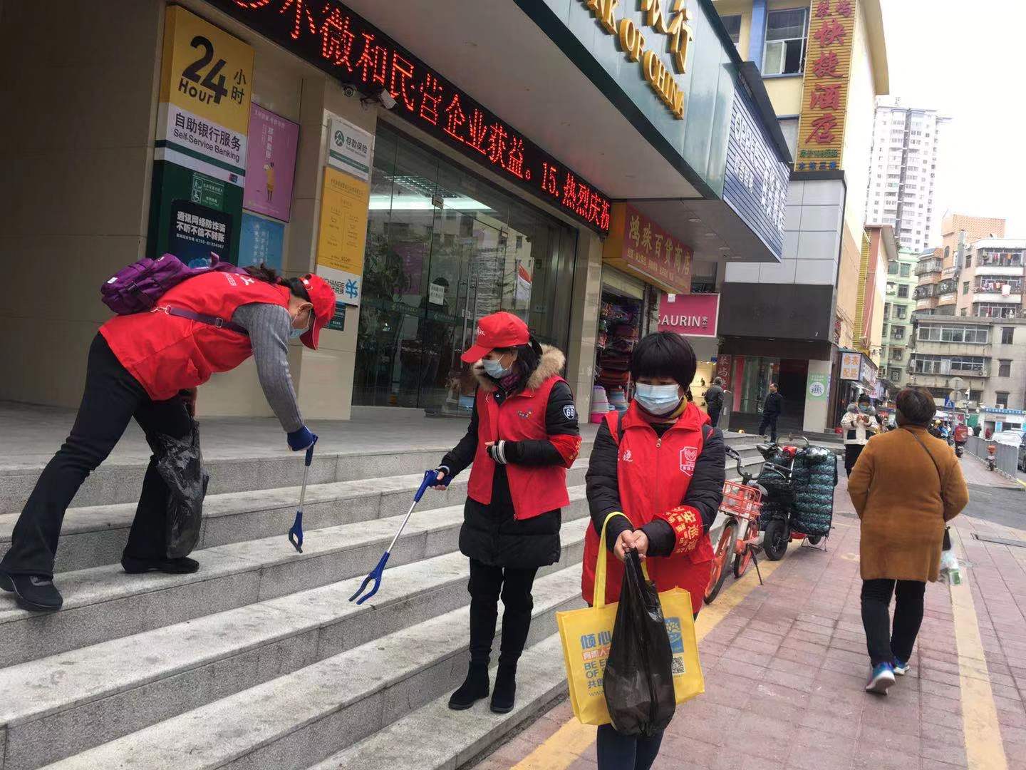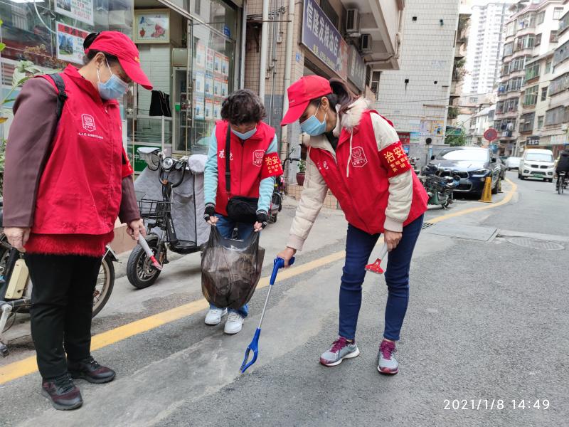 2021年新的一年,志愿者们早早的就在活动地点等着社工发清扫卫生工具;阿姨们说,新的一年,一定要把社区内的角角落落打扫得干干净净。从清水河新村到吓屋村,志愿者们手上拿着铲子,夹子,扫把,沿街走巷,卖力地铲着墙上的牛皮癣;一番清扫过后,社区内的卫生更加美丽洁净。