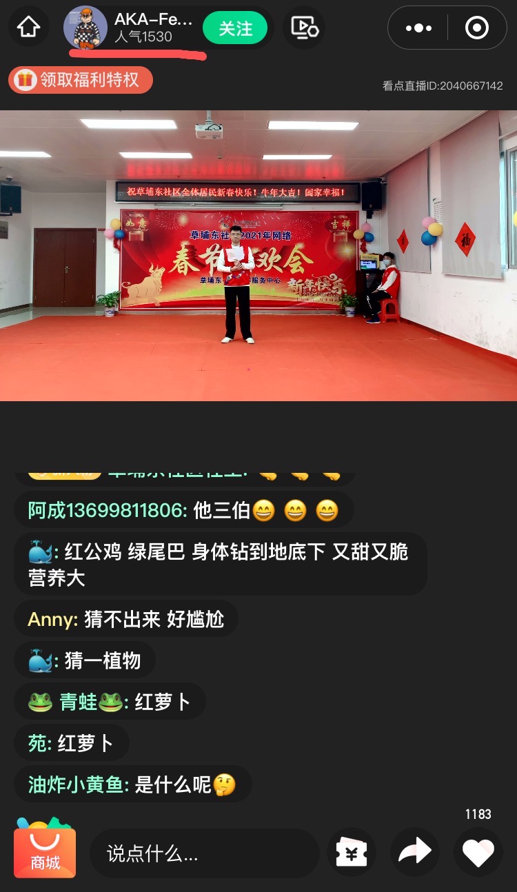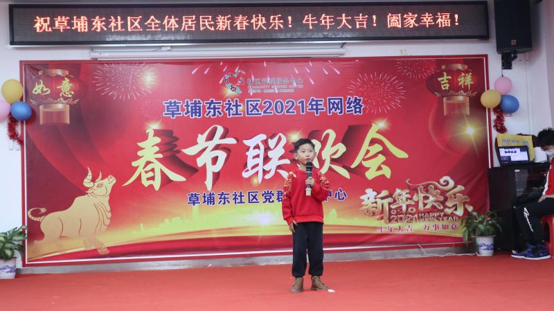为了倡导辖区居民留深过年,营造欢乐祥和的节日气氛,2月9日,农历腊月二十八,在草埔东社区党委的组织领导下,草埔东社区党群服务中心首次隆重举办了2021年网络春节联欢会!