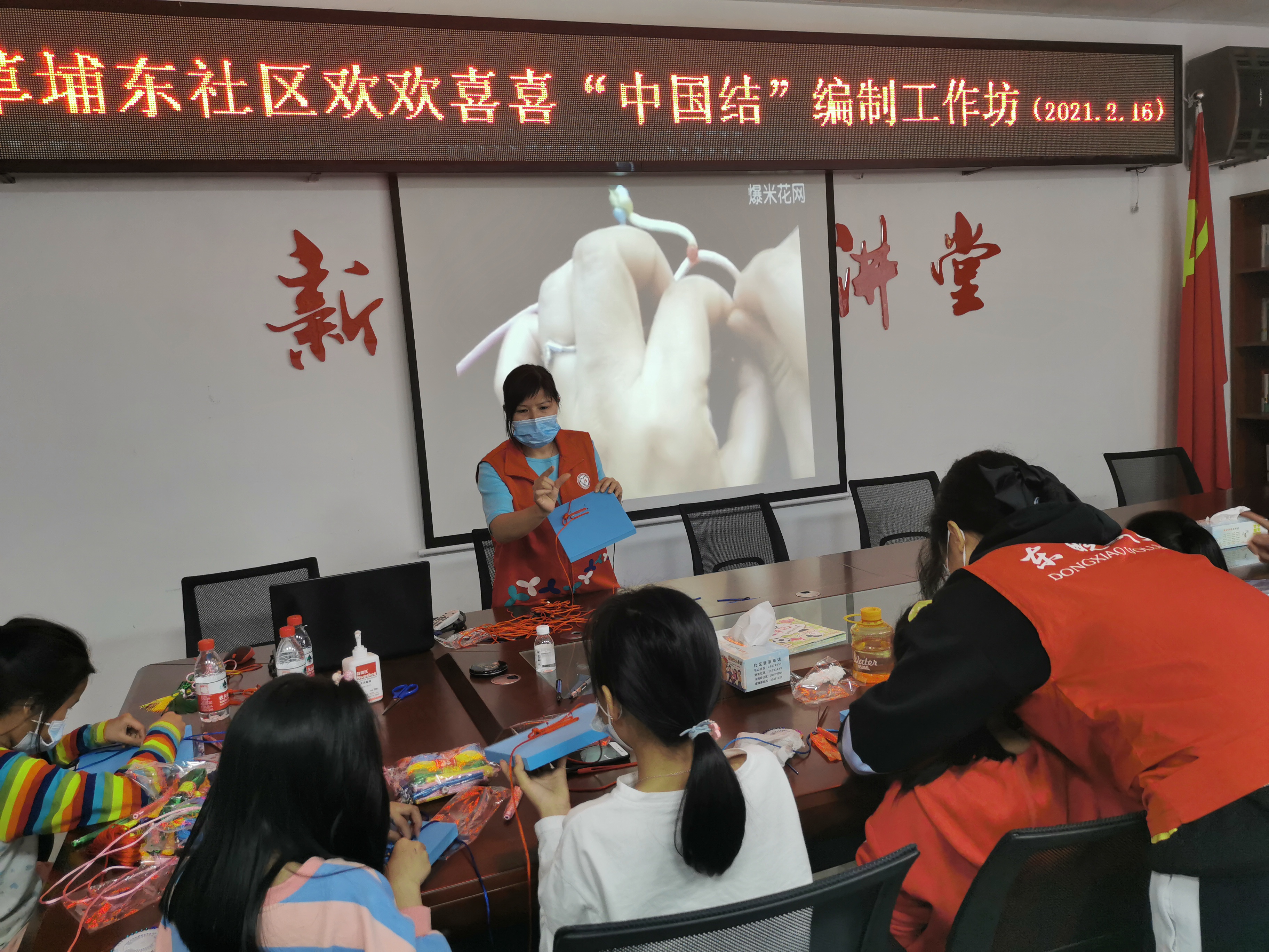 新年大吉,吉祥如意。新年伊始,为提高社区小朋友对中华民族文化的认识和传统艺术的学习兴趣,营造节日气氛,同庆新春佳节。2021年2月16日下午,在草埔东社区党委的支持下,东西方驻草埔东社区党群服务中心社工服务项目组开展中国结编制工作坊,在社区活动室举办。