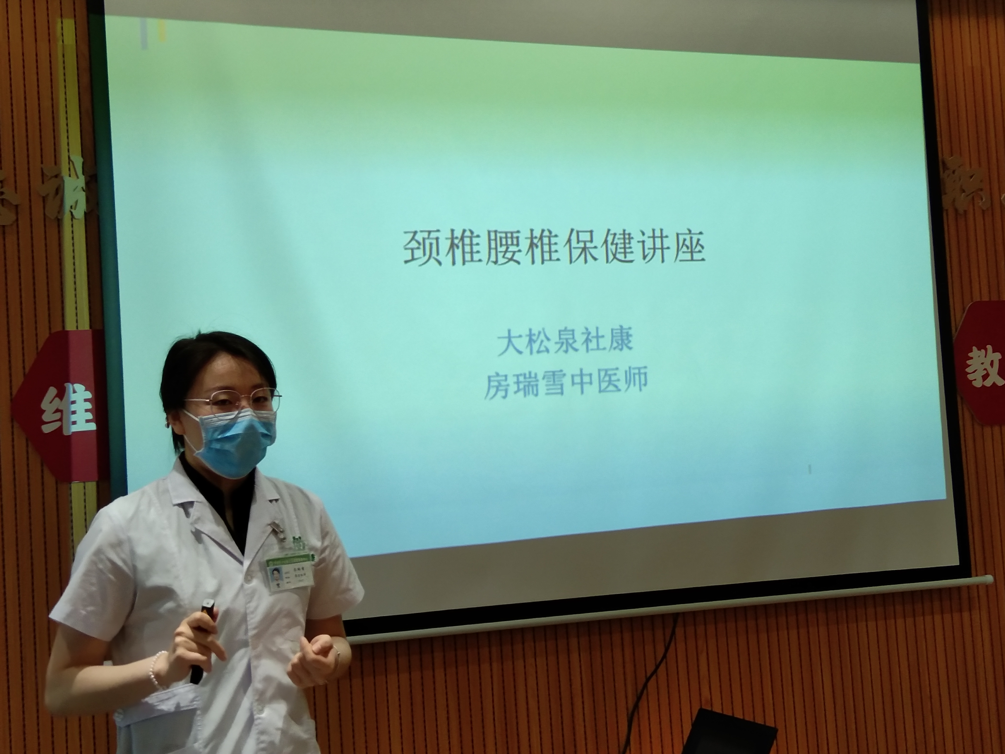 活动现场,大松泉社康房瑞雪中医师现场为老年人讲解了颈椎腰椎预防,骨质疏松症的定义、高发人群、症状表现及危害,以及如何科学预防骨质疏松症,并亲身示范教学,教大家保护好颈椎腰椎。讲座结束后,一位杨阿姨说以前认为如果患了骨质疏松症只要吃点儿钙片儿、喝点儿骨头汤就能好,今天听了专家的讲解才知道患骨质疏松症的严重性,必须要提前预防。