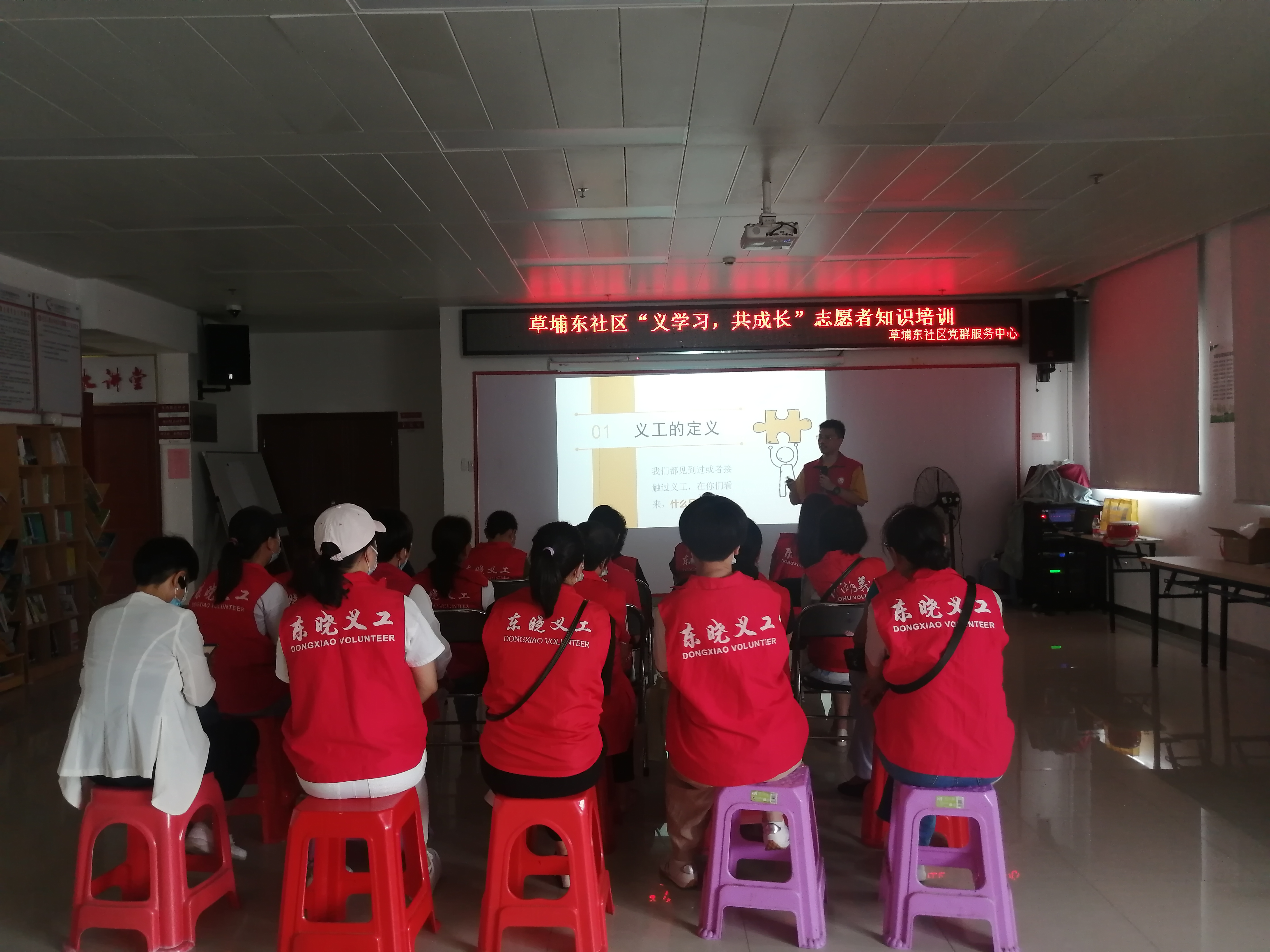 为了让义工提升自身素质,懂得义工的含义,加深义工服务的意识,促进义工队伍的良好发展。在草埔东社区党委的统筹领导下,深圳市东西方社工服务社驻草埔东社区党群服务中心社工服务项目组于2021年5月13日下午14:30开展志愿者基础知识培训,参加培训的义工共有20名。