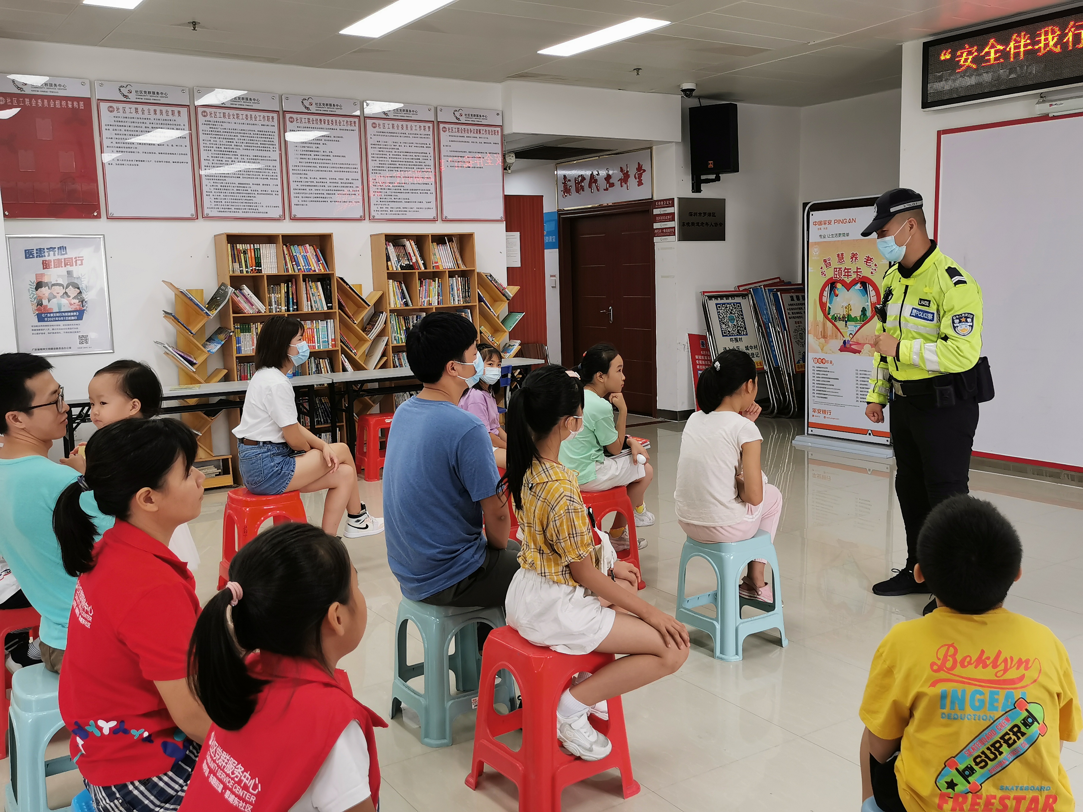随着开学季神兽归笼,学生往返学校正是车多拥挤的交通高峰期,孩子们活泼好动,闯红灯、乱穿马路的现象时常发生,让家长们既开心又担心。社工特此邀请交警大队东湖铁骑戚队长为社区家庭讲解交通规则,尤其是人多路窄过马路时的注意事项,让孩子们懂得马路如虎口,一定要注意安全,珍爱生命。现场小朋友在家长陪伴下都认真听讲,与交警叔叔积极互动,陈同学提问:“如果在人行道遇到电动车该怎么办?”也有家长提问:“开电动车没带头盔怎么处罚?”现场气氛热烈,大家都收获满满。