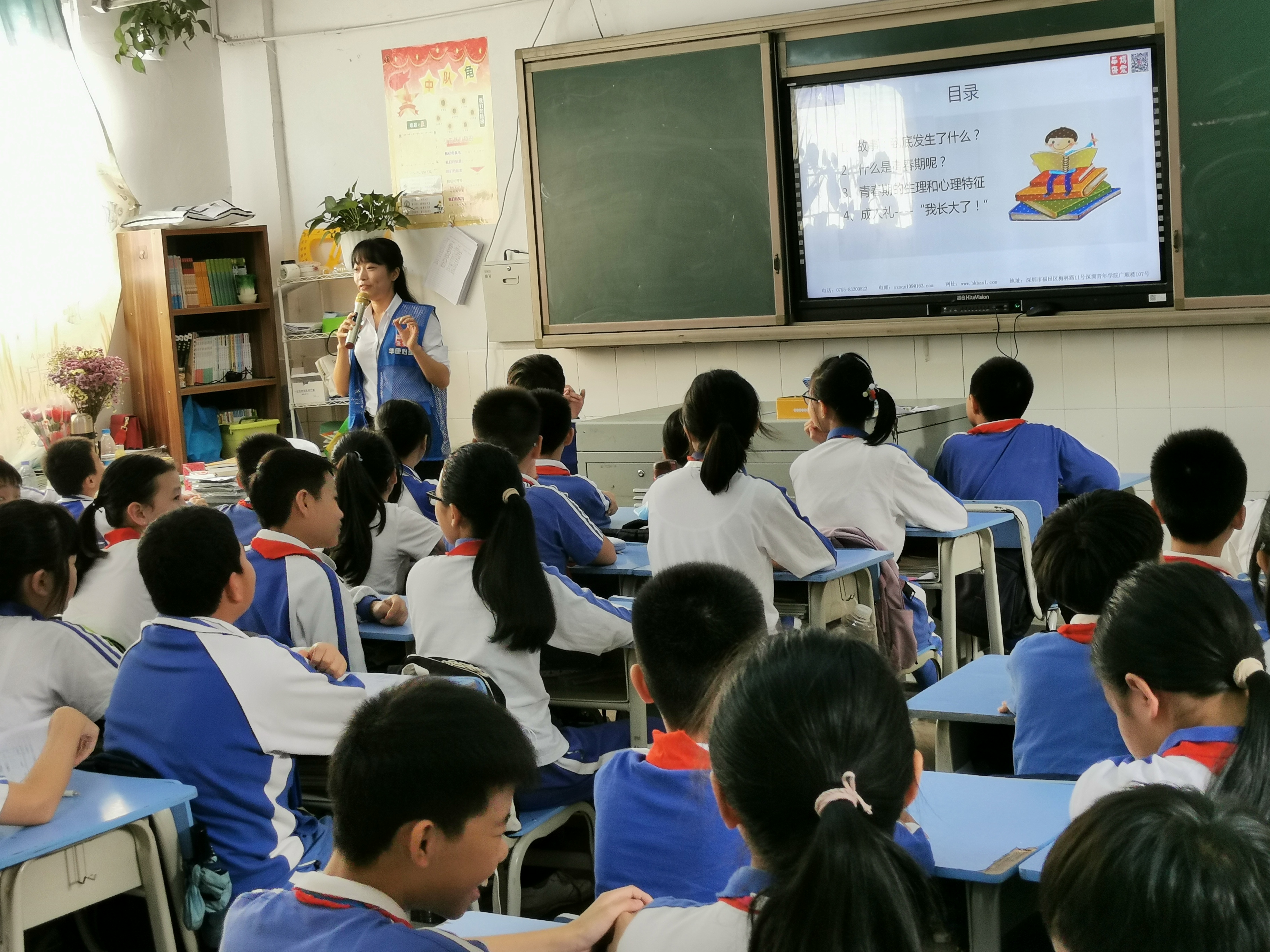 活动现场中,资深专业的心理老师围绕“生活小故事、青春期是什么、青春期的生理和心理特征、成人礼 ----“我长大了!”四个内容进行讲解,通过巧妙的故事、生动的小视频和精彩的互动讨论,来引导青少年认识青春期、了解自己。