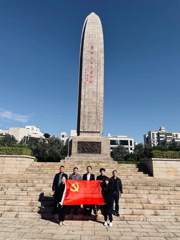进入陵园,首先映入眼帘的是高高矗立的深圳革命烈士纪念碑,碑身的四面镌刻着“革命烈士永垂不朽”八个大字,这是由当年东江纵队司令员曾生同志题字书写的,从高空俯瞰,深圳革命烈士纪念碑正好位于烈士陵园的正中央。活动中,全体党员整齐肃列在革命烈士纪念碑前向革命先烈们默哀致敬,献花,感受“青山有幸埋忠骨,哀思无尽悼英魂”的先烈英勇事迹。随后,支部书记带领党员重温入党誓词,表达对党的忠诚以及为共产主义事业奋斗终身的决心。