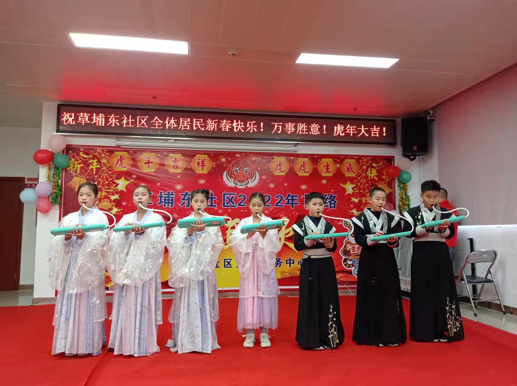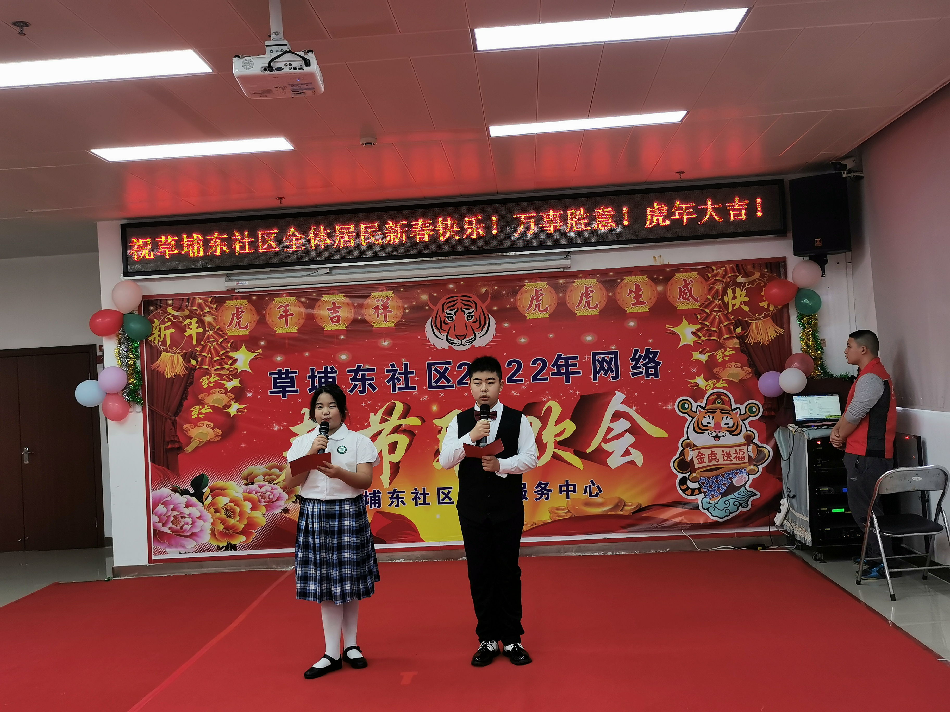 为了庆祝战胜疫情,展示人民的精神文化面貌,丰富新时代文明实践活动,营造喜庆安康的鹏城虎年节日氛围,东西方社工驻草埔东社区党群服务中心于1月26日下午隆重举办了“草埔东社区2022年网络春节联欢会”,通过文艺展演、灯谜竞猜、新春祝福等形式,来增加社区邻里间的沟通和交流。活动在草埔东社区多功能活动室开展,由42名表演人员和义工参加,并吸引了近200人在线观看。