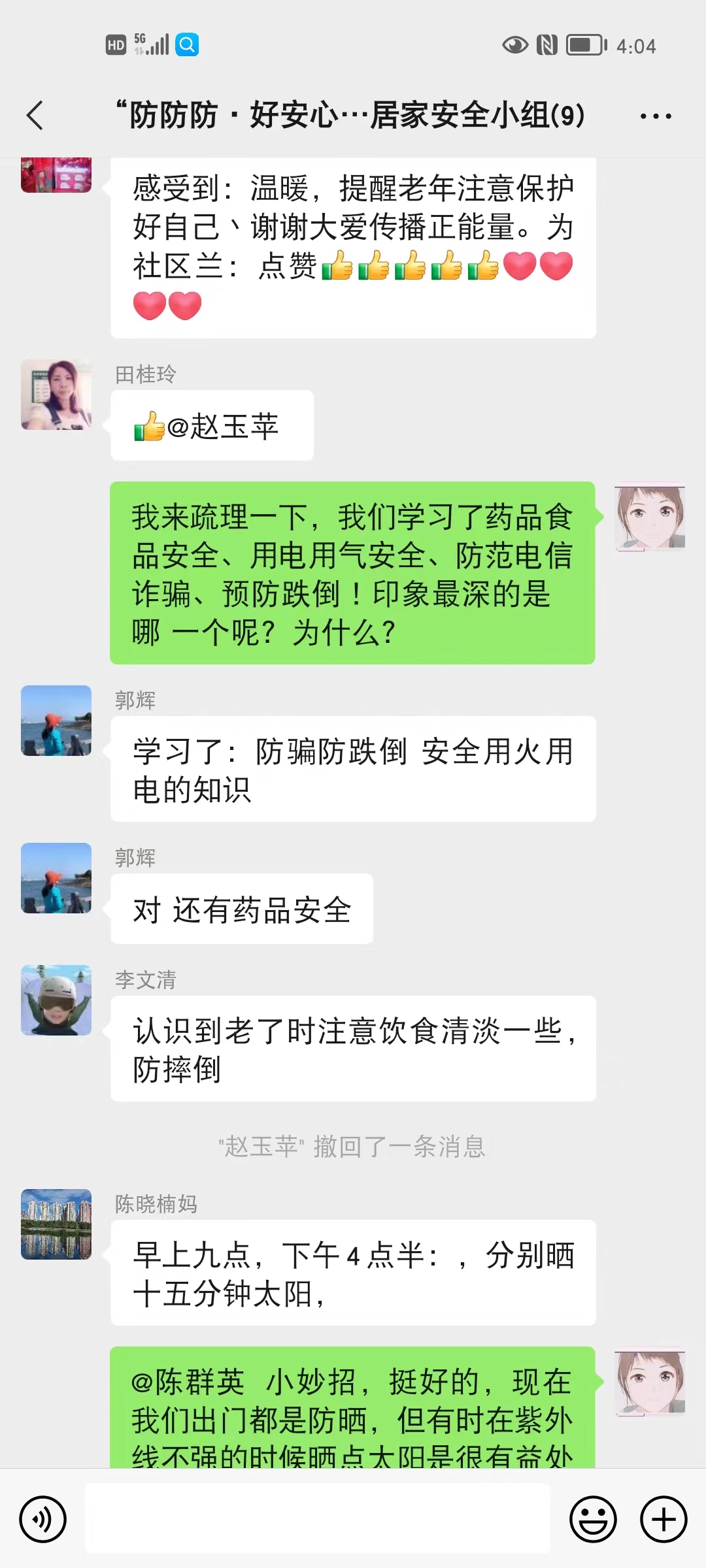 本次线上小组活动的开展,不仅为长者们提供了一个学习交流平台,同时也切实提升了长者们的居家安全意识。接下来草埔东社区将进一步开展有利于长者健康活动,社工也将给长者带来更多的知识和欢乐,希望长者们拥有更多的快乐和健康。