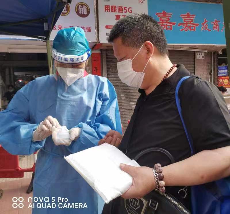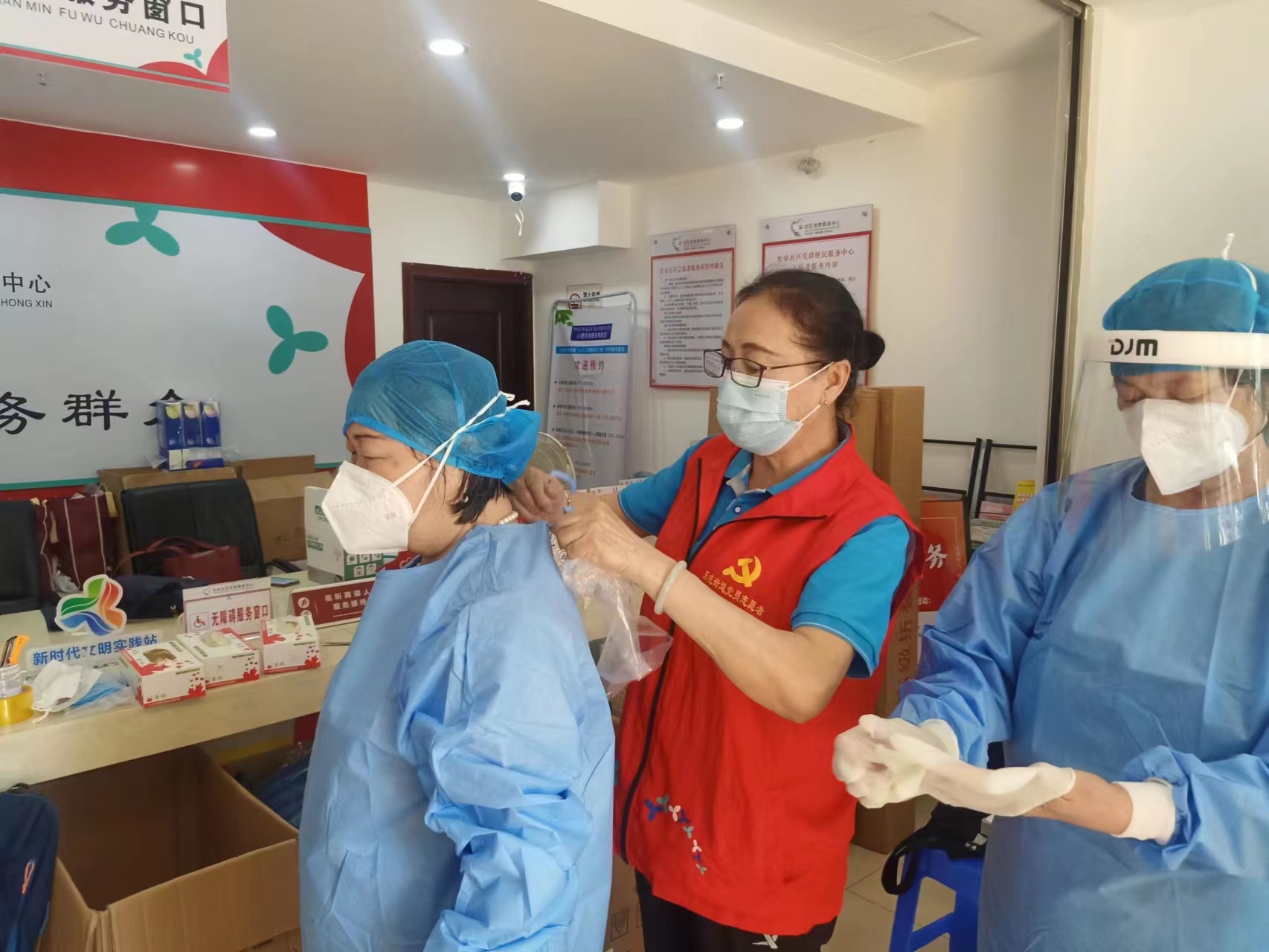 在各个社区进出的门前,在社区核酸检测的站点,随处可见那一个个身穿“红马甲”的身影。老党员姚凤玲(也是东晓街道老年人协会会长)。从2022年1月7日开始,不仅坚持几乎每天都奋战在松泉社区协助10小时,主要负责分发防疫物资供应三个核酸点。还在老协微信群里号召广大党员及老协志愿者积极参与抗疫。