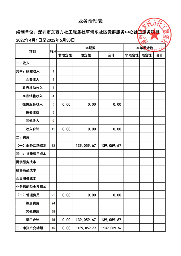 深圳市东西方社工服务社草埔东社区社工服务项目业务活动表
