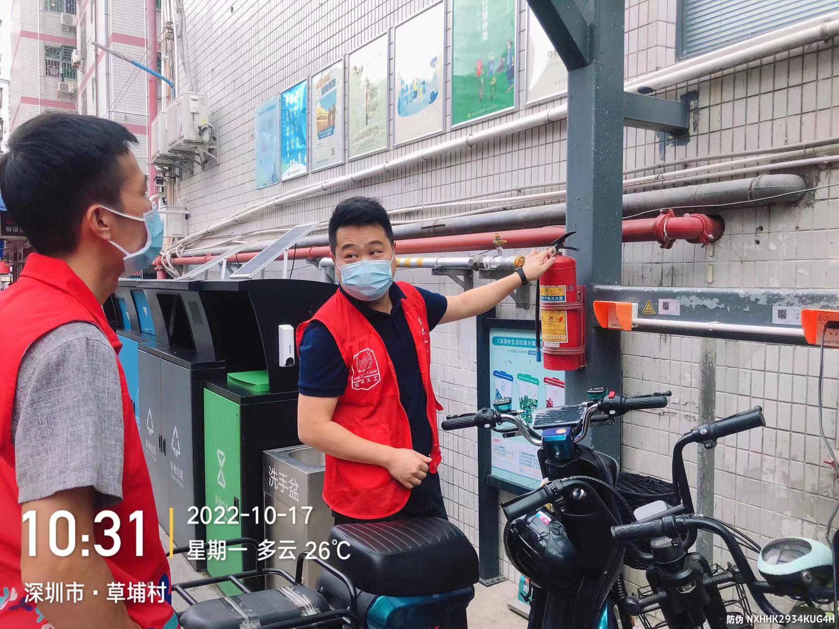 10月17日上午,市应急管理局挂点草埔东社区党员干部张建勇协助社区开展疫情防控和“创文”工作,督促社区卡口、工地严格落实疫情防控要求,督促进出村居民戴好口罩,工地人员必须每日按时做核酸。同时,干部发挥长处优势,临时抽检三家门店的安全生产工作,对液化气罐、用电安全、消防报警等各方面进行专业检查。