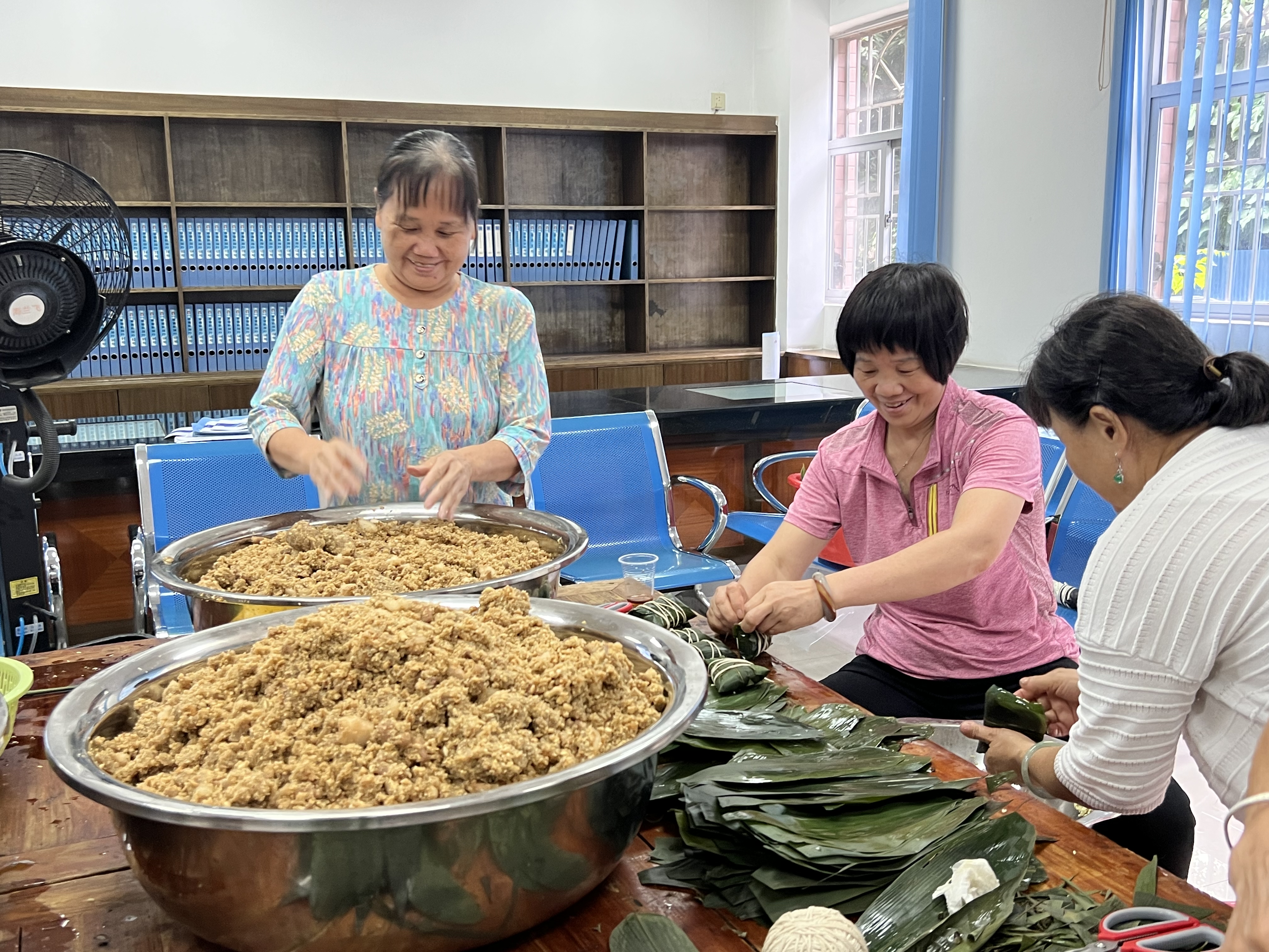 草埔东社区村民包粽子