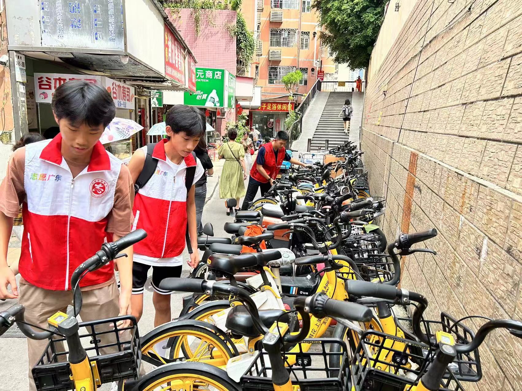 青少年义工整理共享单车