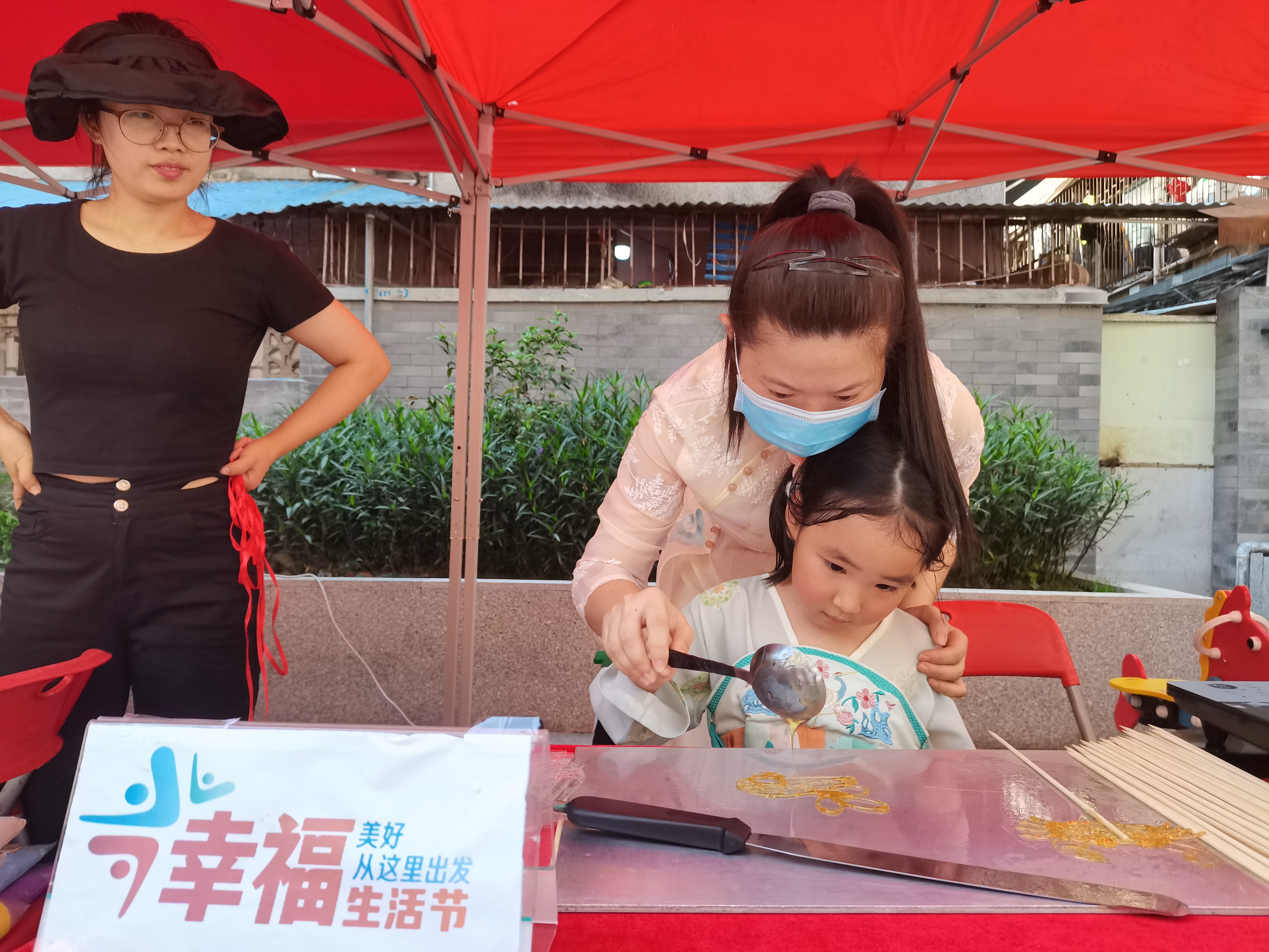 草埔东社区将邻里节与“幸福生活节”活动相融合,通过开展游园会形式,开设多个摊位让居民进行观看游玩,现场还融合了许多传统文化元素,例如猜灯谜,投壶游戏,糖画、面人制作等传统活动。让居民朋友们特别是现场的青少年感受非遗的魅力和中华文化的博大精深。