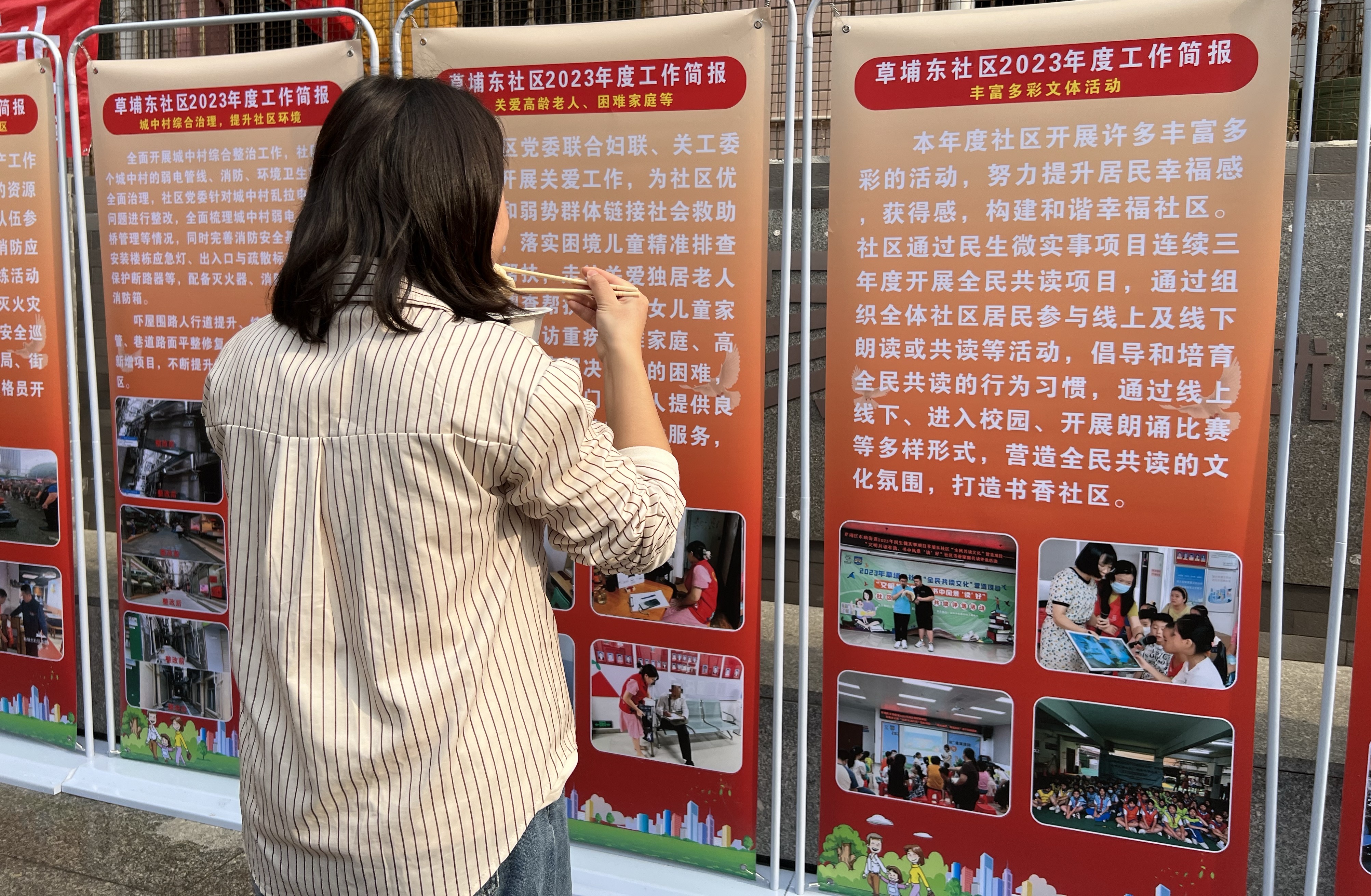 罗湖区东晓街道草埔东社区居民观看社区2023年工作简报