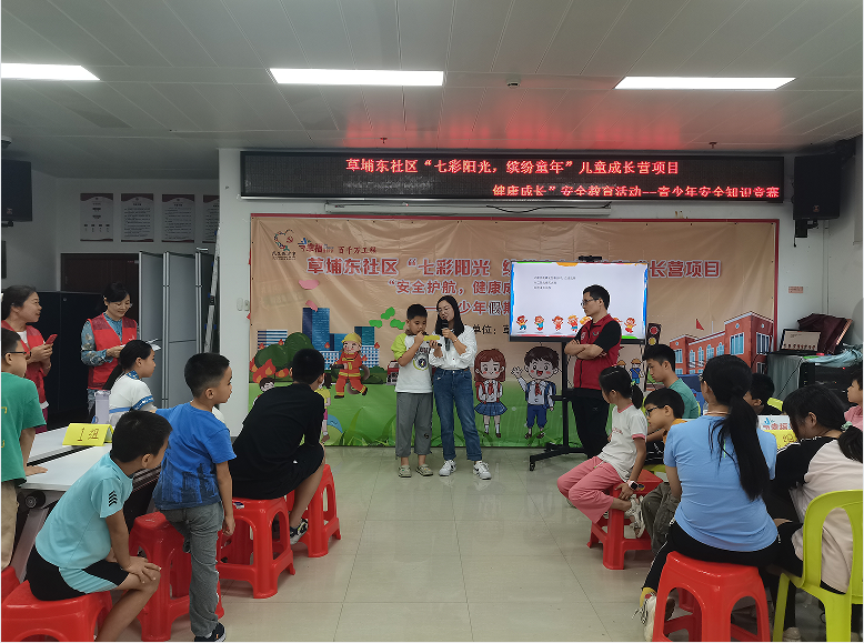 2024年10月26日下午,草埔东社区开展民生微实事 “七彩阳光,缤纷童年”儿童成长营项目——“安全护航,健康成长”安全教育活动——青少年安全知识竞赛,吸引40多名社区青少年参加。