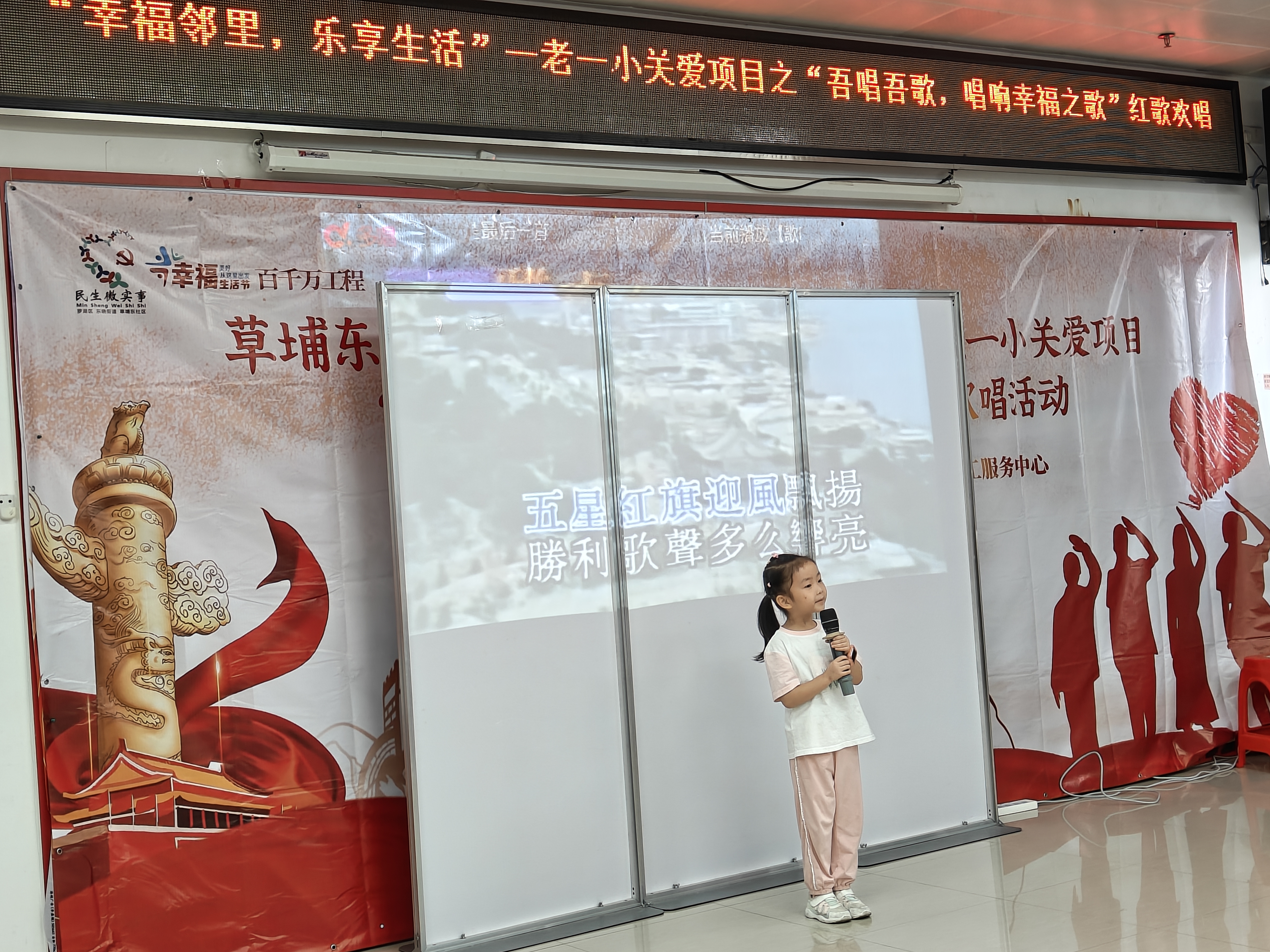 为了促进邻里交流,增强社区凝聚力,增强居民群众爱家爱国意识和睦邻情感。2024年11月3日,草埔东社区开展了民生微实事“幸福邻里,乐享生活”一老一小关爱项目之“吾唱吾歌,唱响幸福之歌”红歌欢活动,活动吸引30名社区居民参与。