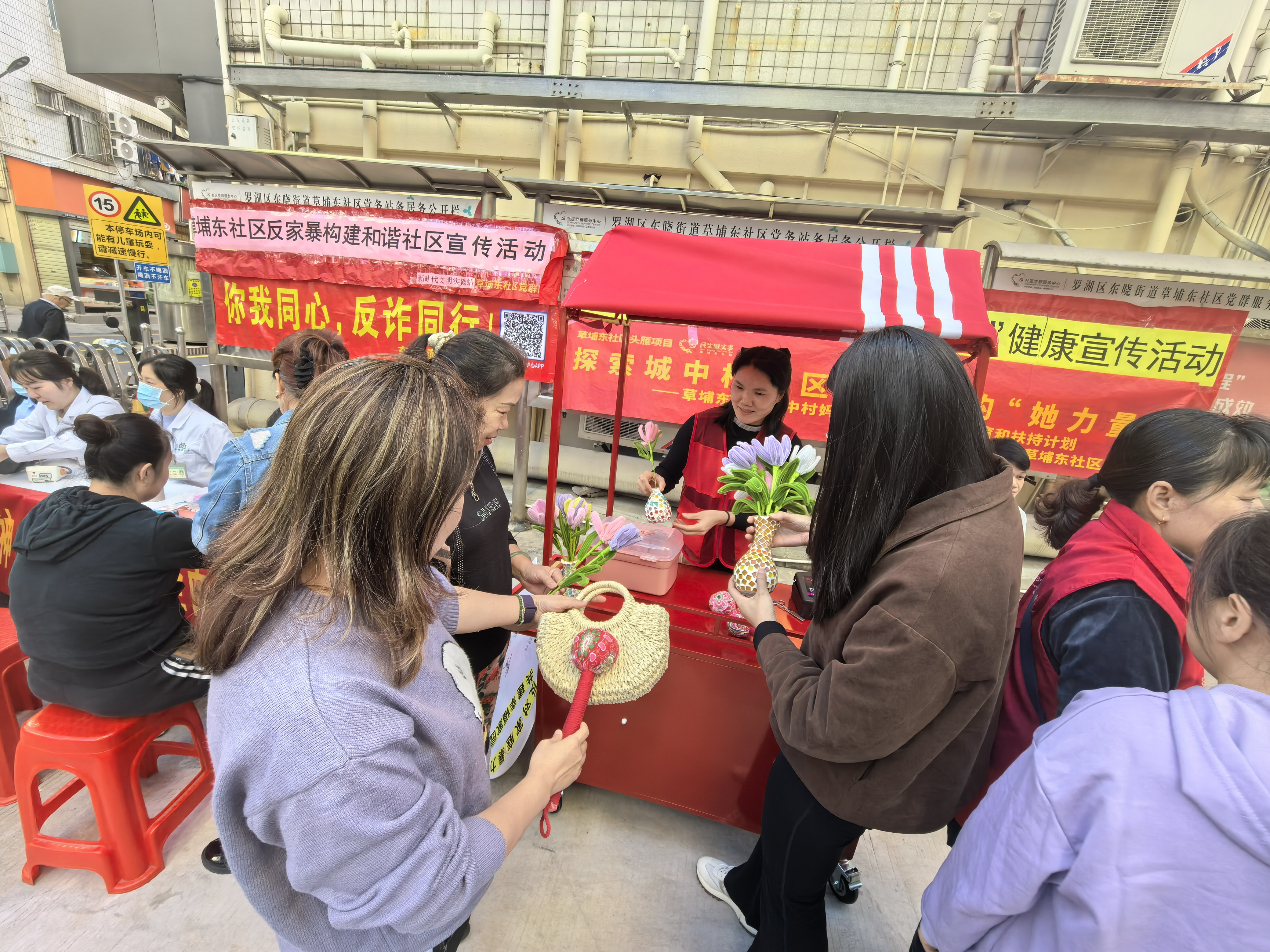 草埔东社区开展便民服务集市活动,摆摊设点服务群众