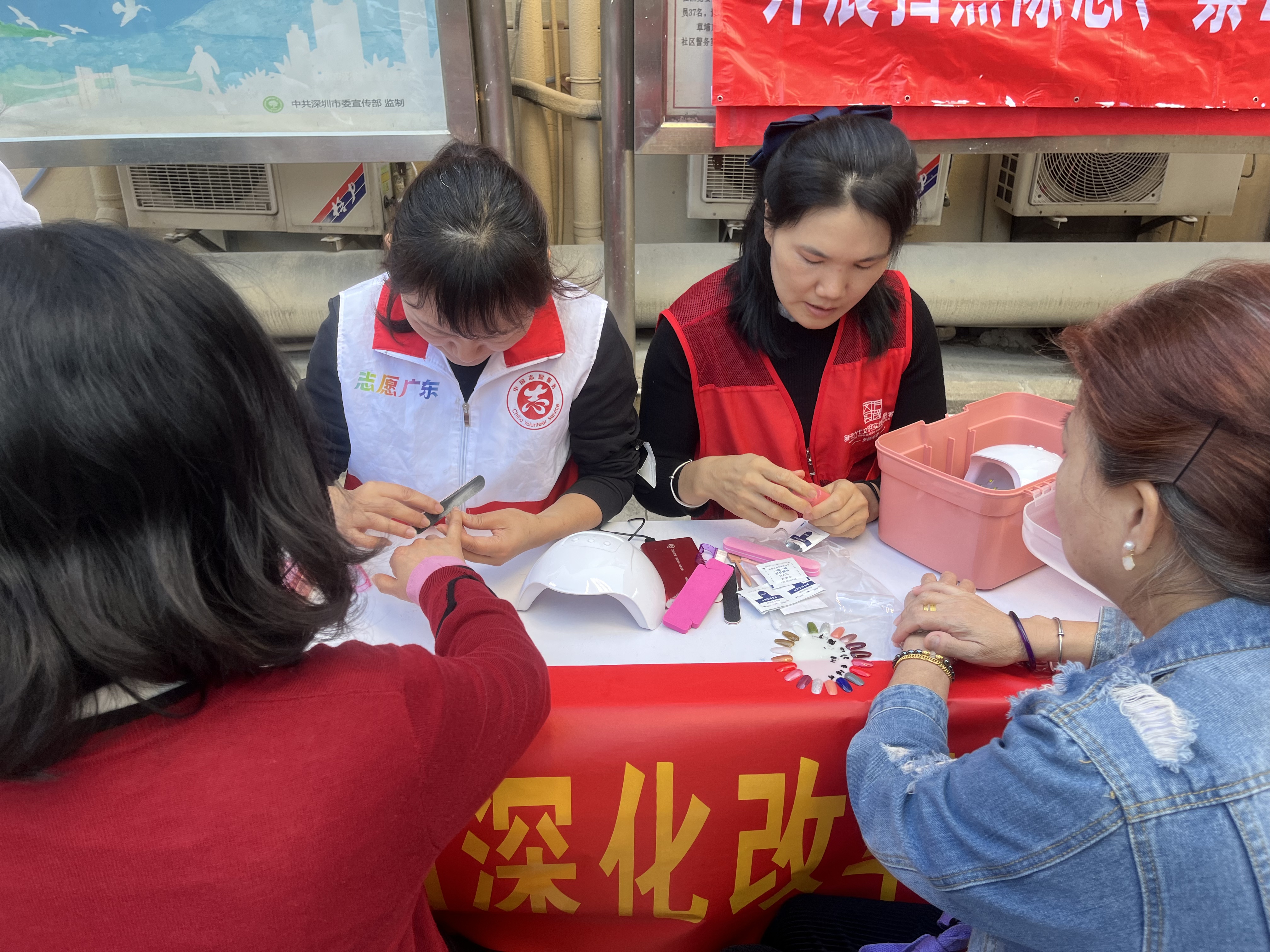 “听说咱们社区的全职妈妈们出摊啦,有免费的理发和美甲服务,可以测量血压血糖,还有医生坐诊提供健康咨询服务,我们一起去赶集!”11月26日,罗湖区东晓街道草埔东社区的居民群众相约前往社区开展的“楼下服务摊 ,群众幸福集”便民服务集市赶集,草埔东社区联合社区健康服务中心,组织辖区城中村妈妈、“草埔巧手团”志愿服务队共同“摆摊设点”,为居民群众提供家门口的各式便民服务。