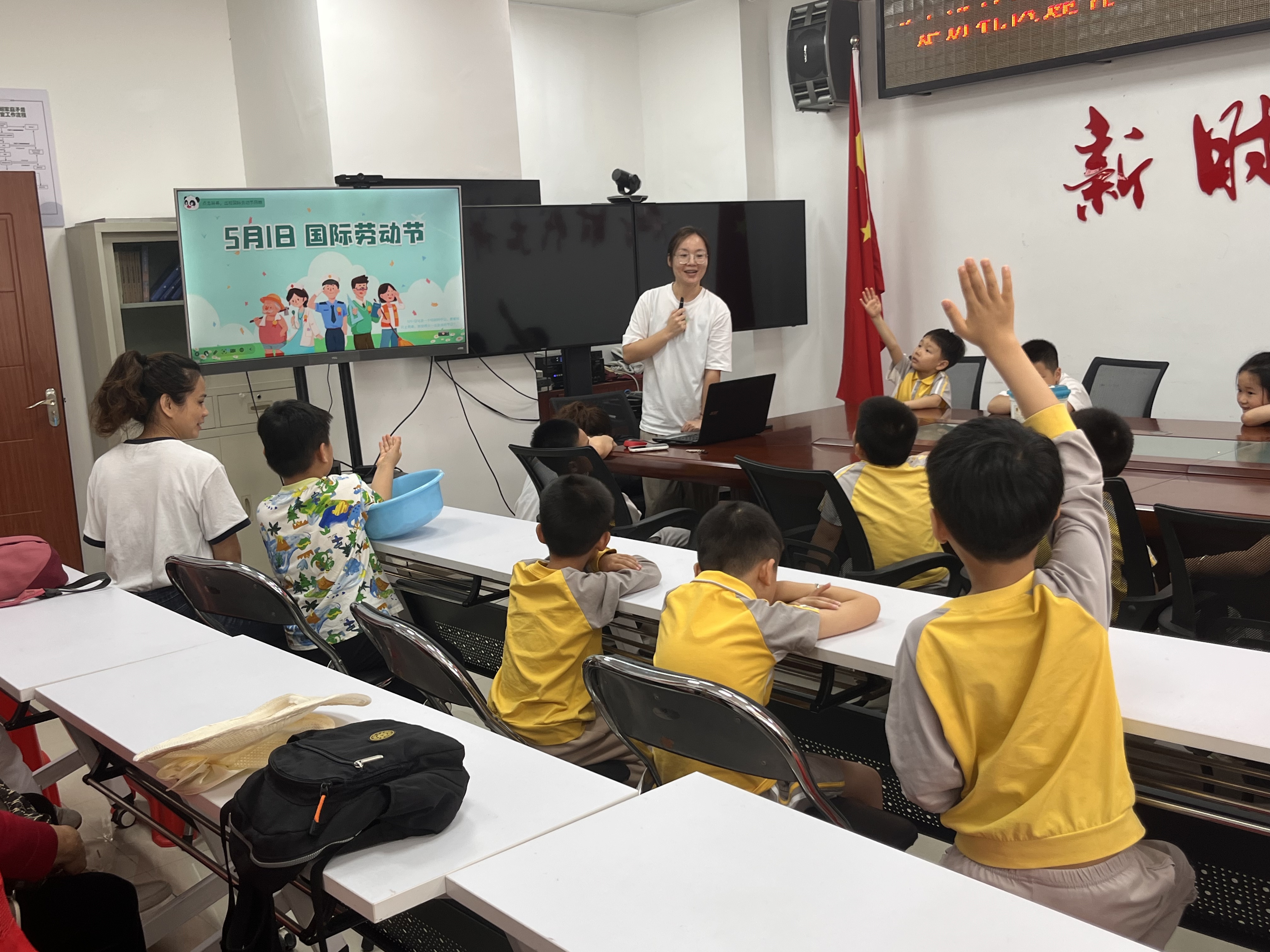 活动伊始,社区工作人员在明亮的会议室里,通过生动的讲解和展示,向小朋友们介绍五一国际劳动节的由来。屏幕上,一幅幅画面展现着不同职业劳动人民的辛勤付出。有身着工装,在机器旁专注操作的工厂工人;有头戴安全帽,在高楼大厦间忙碌作业的建筑工人;有手握方向盘,日夜奔波在公路上的货运司机;还有手持扫帚,无论严寒酷暑都坚守在街头的环卫工人。他们在各自的岗位上挥洒汗水,却长期面临着工作时间长、劳动强度大等困境。为了争取合理的权益,劳动人民团结起来进行斗争,最终赢得了属于自己的节日 —— 五一国际劳动节。这些生动的介绍,紧紧吸引着小朋友们的目光,他们纷纷举起小手,踊跃回答问题,现场气氛十分热烈。