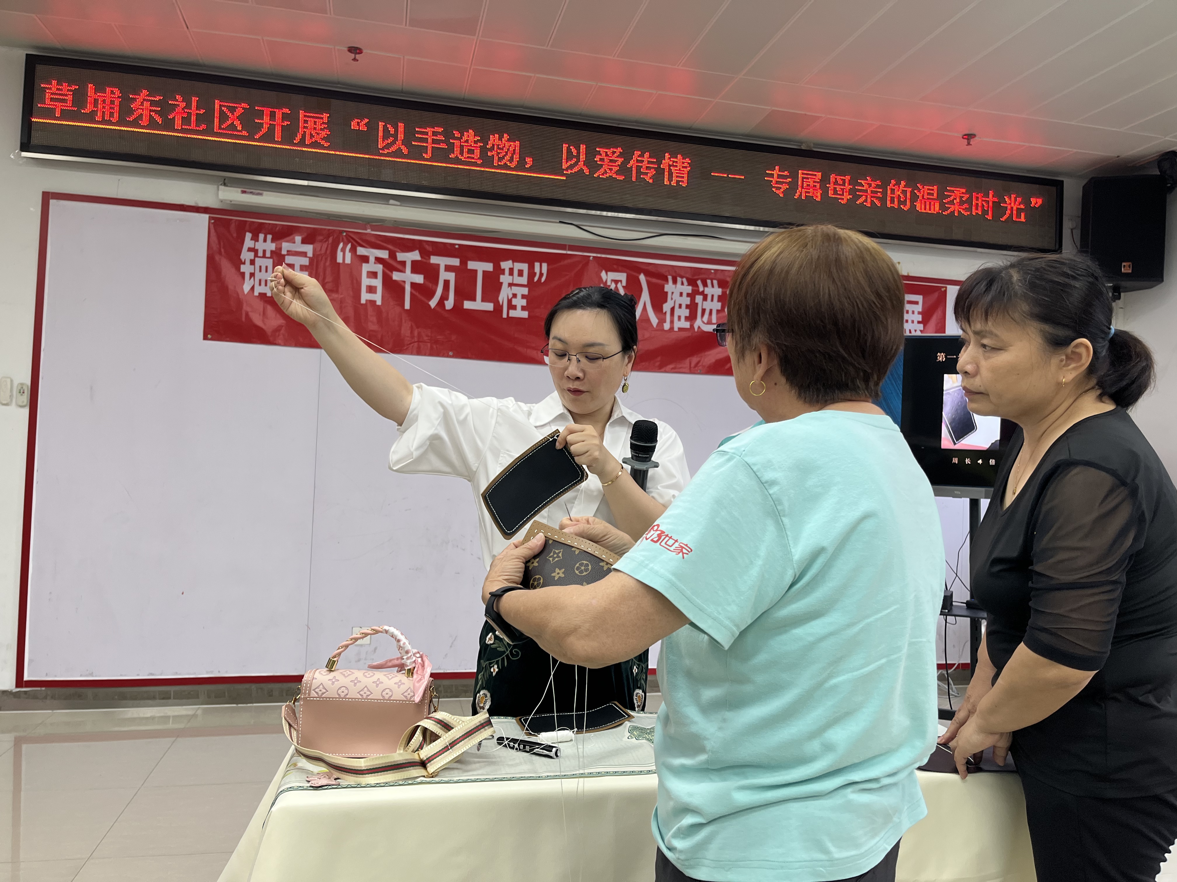 此次活动不仅是向母亲表达爱意与感恩。而在草埔东社区这场活动中,母亲们用亲手制作的包包承载心意,不仅为自己创造了美好回忆,更在相互协作中传递着温暖与爱。这份邻里间的情谊、社区内的关怀,恰似母亲节里最温馨的花朵,绽放在每位母亲心间,让这个特殊的时节更具意义。