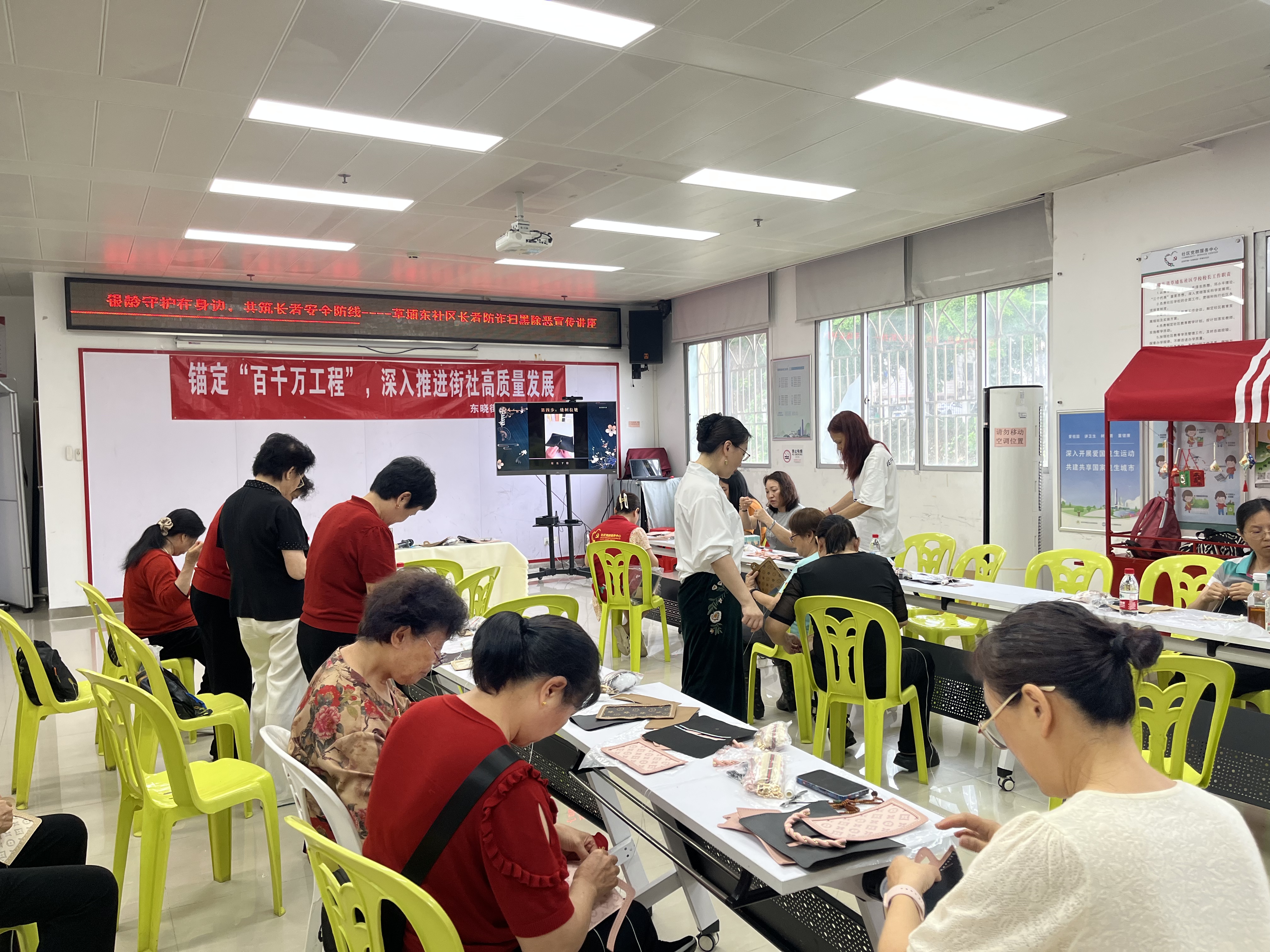 社区工作人员在现场忙前忙后,不仅提供了周到的服务,还通过大屏幕展示制作教程,确保每一位参与者都能掌握制作要领。活动现场的背景墙上,“锚定‘百千万工程’,深入推进街社高质量发展” 的标语醒目而振奋人心,激励着大家在享受手工乐趣的同时,也不忘为社区发展贡献力量。